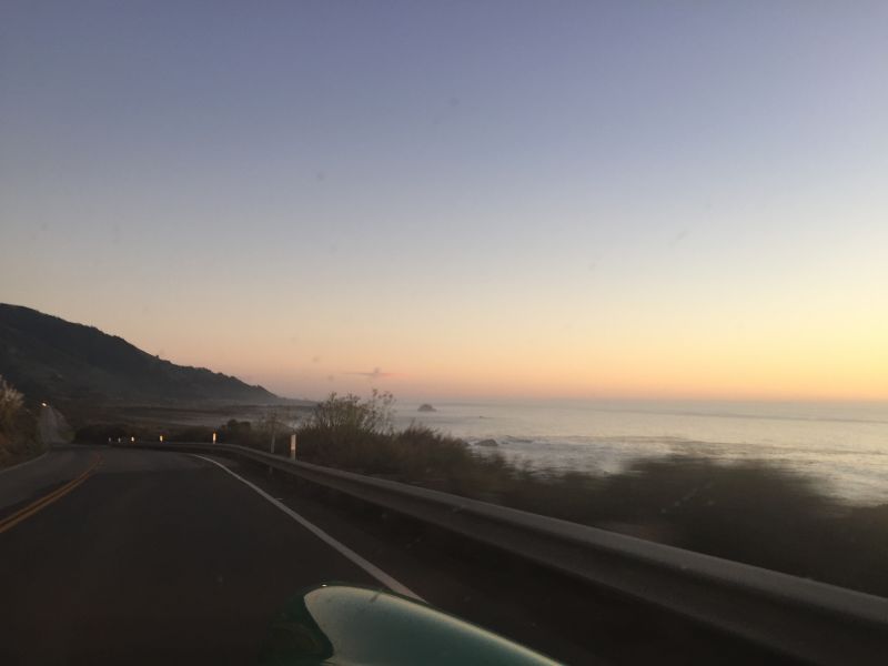 And a couple more. Evening drive to Lucia, about 17 miles up the coast. Saw some whales, about which Cha was very excited. Sunset. Then a blistering run back down to the camp at dusk. And here's the deal: for that entire 17 mile stretch we never encountered another southbound car! Clear air the whole way. Thank you super slide!