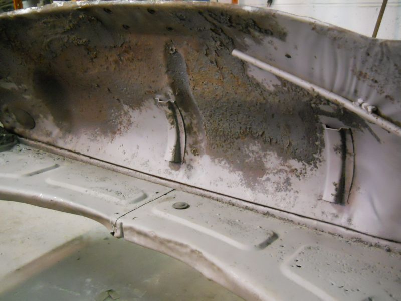 Here is the trunk rear bulkhead wall and cable release tube area on this 1959 356AT2 chassis. I noticed it varied just a little from my early T1 car. Note the small grometed hole on the lower right side there. I believe this is for a wiring harness for maybe a parking brake release warning light?? Anyone know for sure? Anyway my T1 car does not have this hole in the floor.