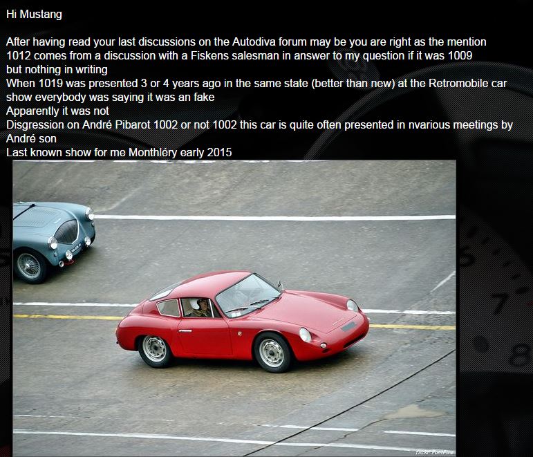The "buzz" came from the fact that Fiskens was displaying this car as an original Abarth just bought back to France from the US by a well known cook, but it was impossible to find more info