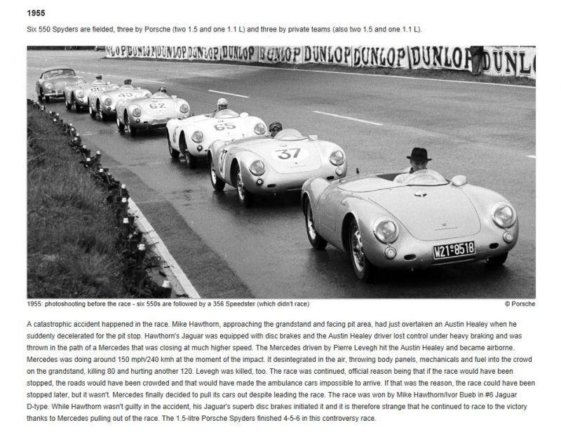 For the Porsche fans 1955 was a fabulous year with : 5 out of 6 starting cars finishing amongst the only 21 arrivals cars and 3 cars 4th, 5th and 6th overall ahead of much more powerful cars