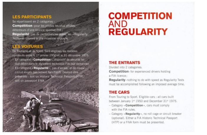A picture of Claude Storez/Robert Buchet white speedster was used to attract potential competitors with the mention no gravel roads only asphalt and no racetracks
