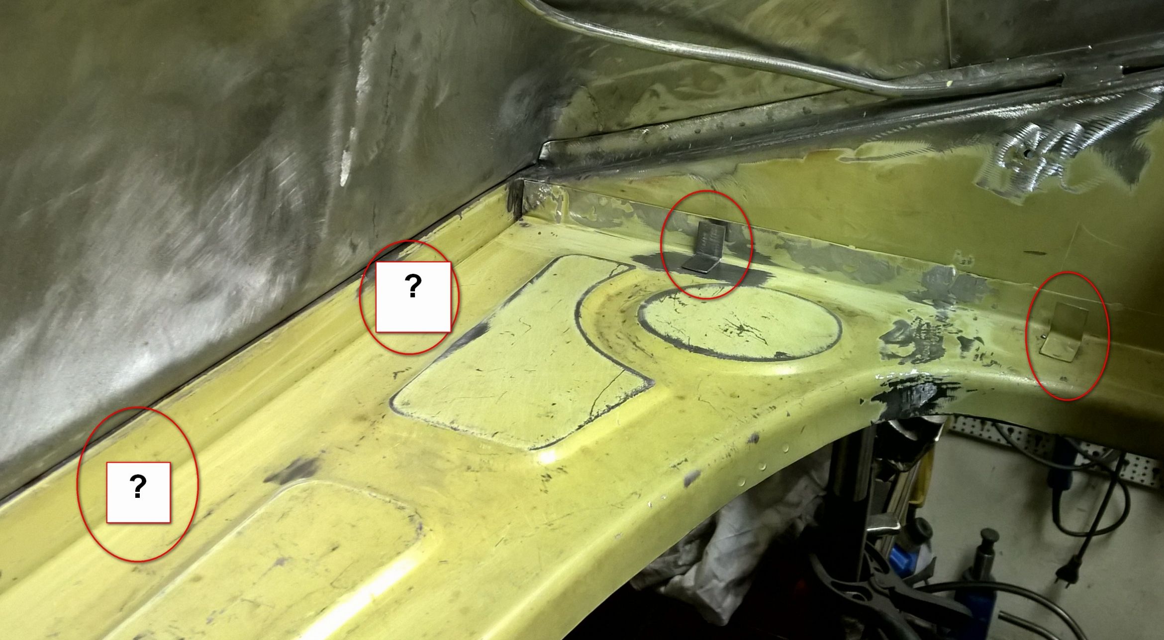 Thank you very much for your explanation. I Understand all about the two holes for the rear light and the strips outside the engine bay for the wiring but the question abot the strips inside the engine bay is still open. Are there also strips on the backside like these one the side walls from the engine bay. I think these are to hold the insulation from the engine bay in place?