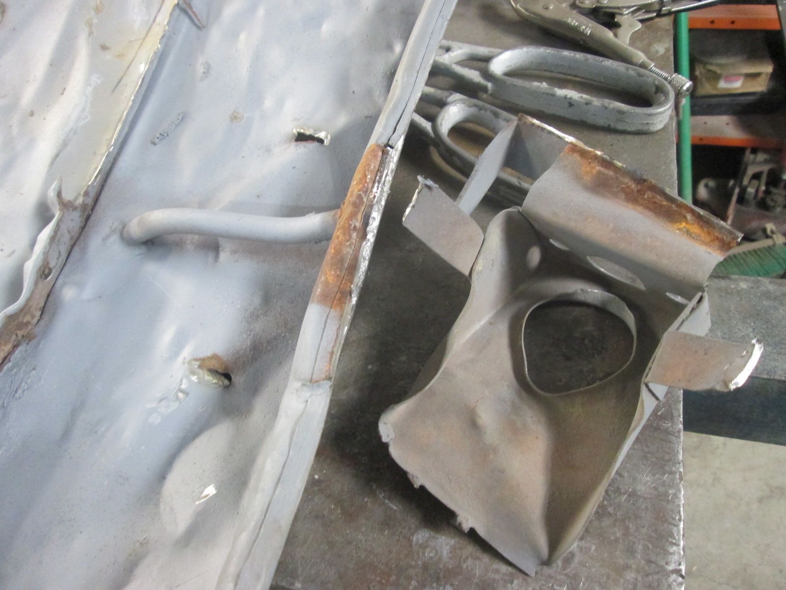Click image for larger version  Name:	IMG_0445.jpg Views:	0 Size:	200.7 KB ID:	114268 corner and vertical wall patches installed. It worked out leaving that inner section for last as this hole gave me an access to clamp the patches tightly as the stitching went. Welds also dressed and cleaned up at the bottom of the hinge pocket; on this side anyway.