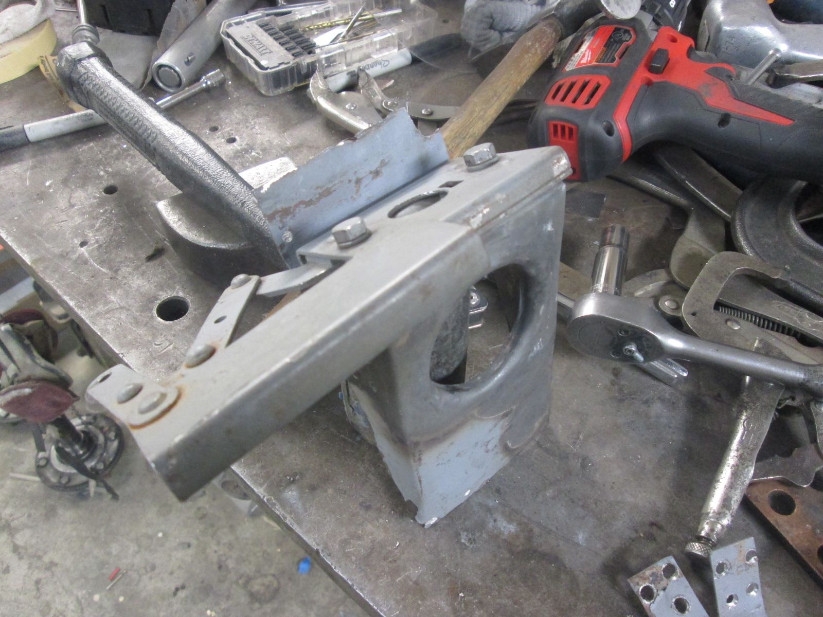 Click image for larger version  Name:	IMG_0392.jpg Views:	0 Size:	214.9 KB ID:	114199 Original latch and base are ready for hood mock ups. Dismantling it for straightening was the only way to go .