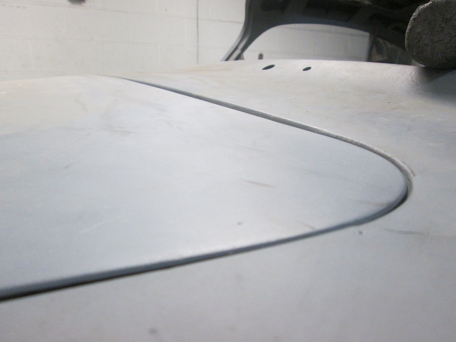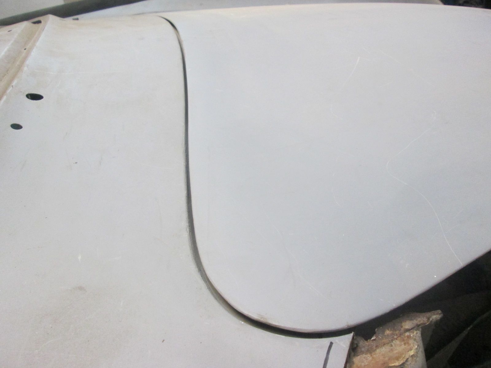 Click image for larger version  Name:	IMG_0420.jpg Views:	0 Size:	157.2 KB ID:	114218 This is the under side directly under that area. Can't decide where to cut this out and restraighten or get it as close as I can in one piece. Either way the hoods profile ahs to be relaxed along this run. Click image for larger version  Name:	IMG_0412.jpg Views:	0 Size:	483.1 KB ID:	114219 With the hood in its best adjusted position with the cowl so far the original alignment holes are now just out. Once I get the hood completely established the old holes in the hood mounts will be welded shut and will be redrilled to Locate the hood where it now needs to be.