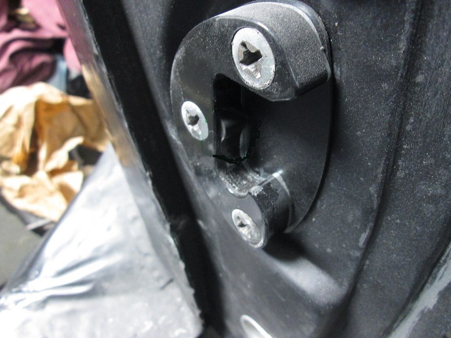 Any adjustment forward and this door will stop latching all together. Realizing this latch engagement now really bothered me. For safety reasons mainly as this is an open car and prone to chassis flex. I could just see this door springing open going around a turn. I've seen old pics of them doing just that so I know it happens. This current situation only exacerbates the problem.