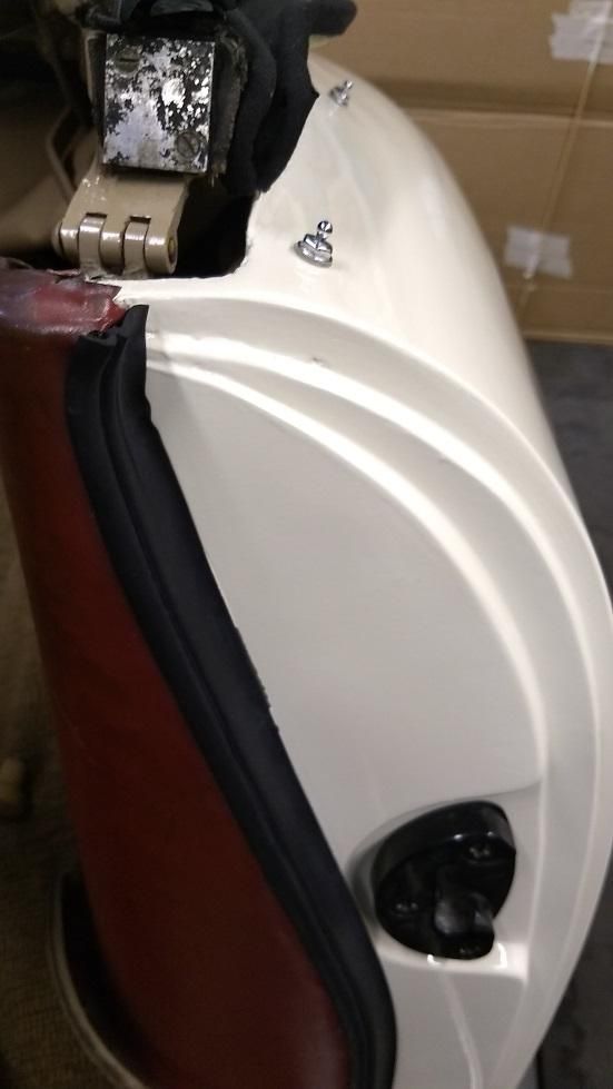 I began weighing my options as to how I was going to get past this. My first thought was to move the door forward to get the final gap width I needed but as you can see in this photo The "flipper" is only engaging on the very outer edge of the receiver.