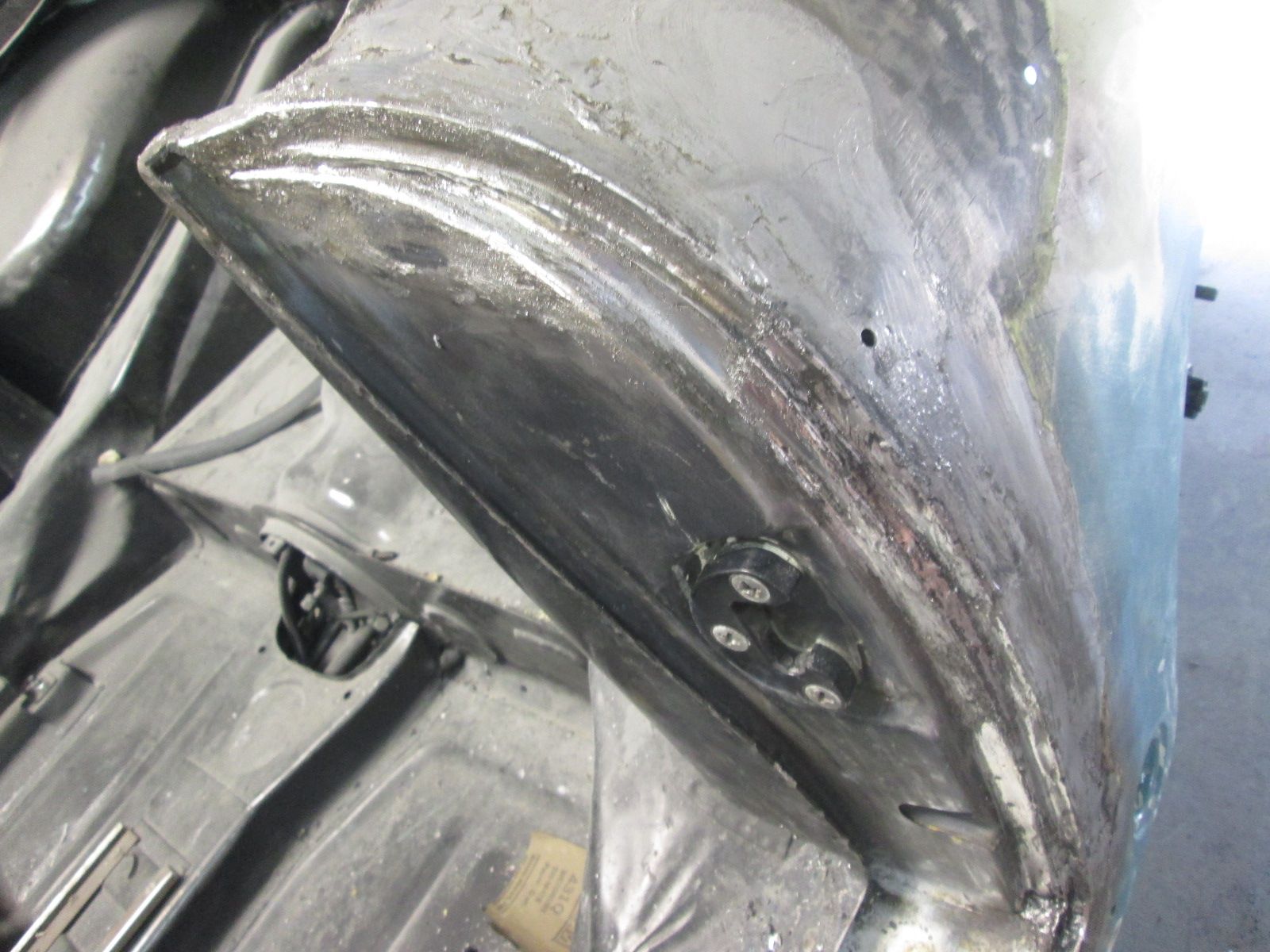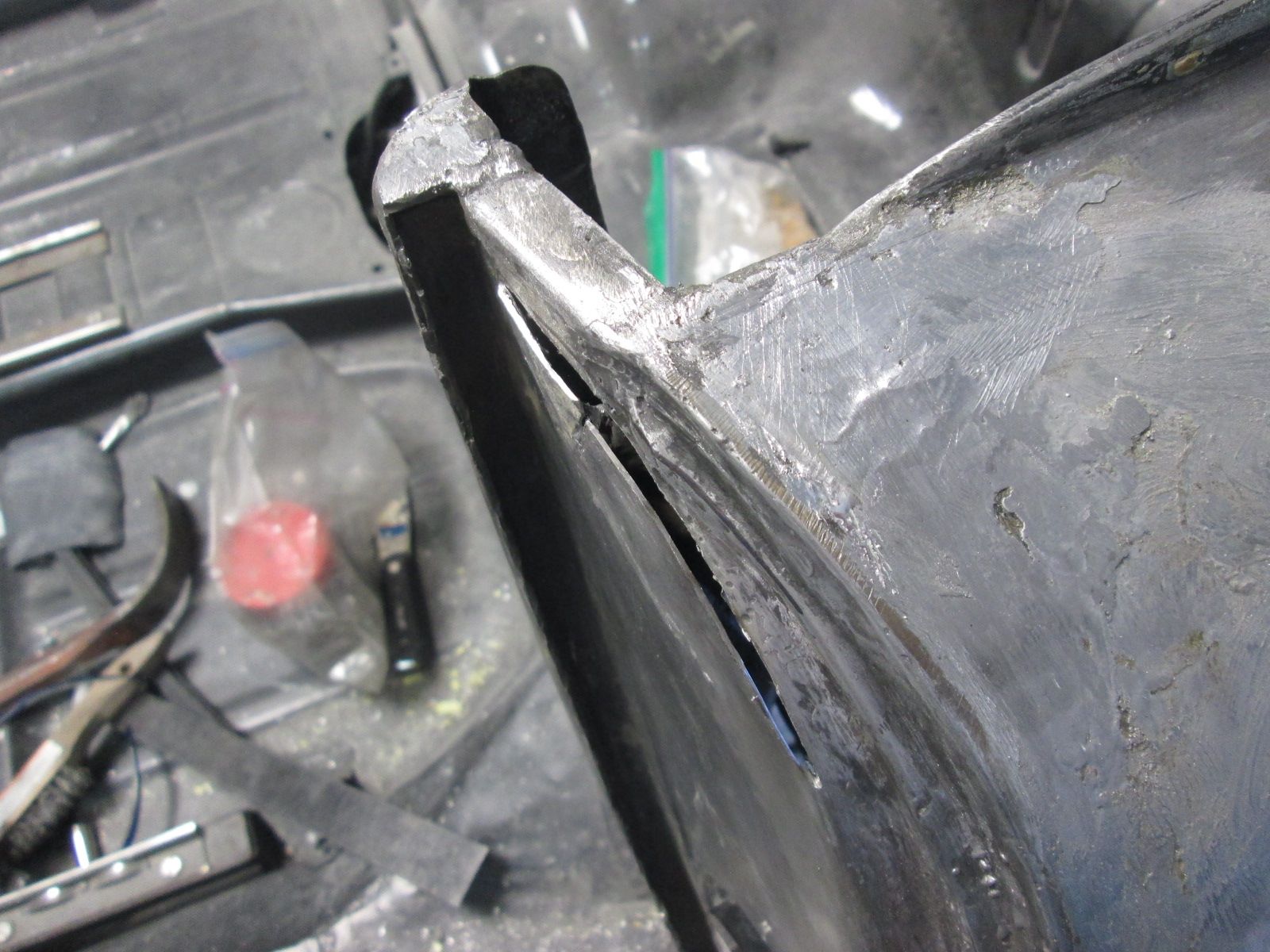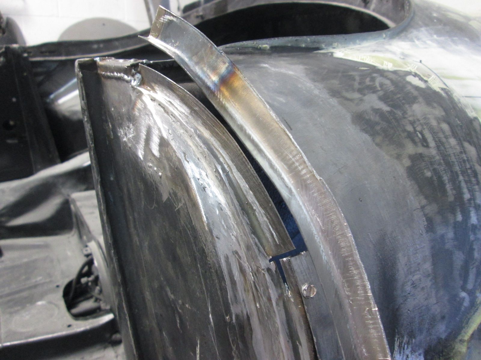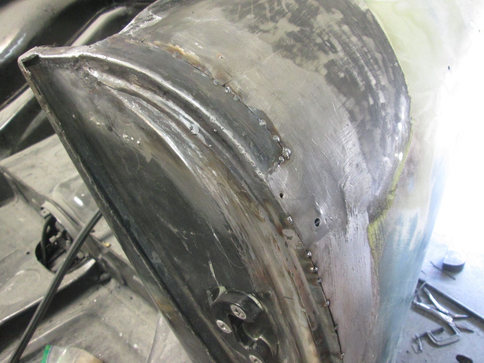 Some photos out of sequence : Rear gap ran tight so slowly grinding out the solder here to get a 3mm gap.