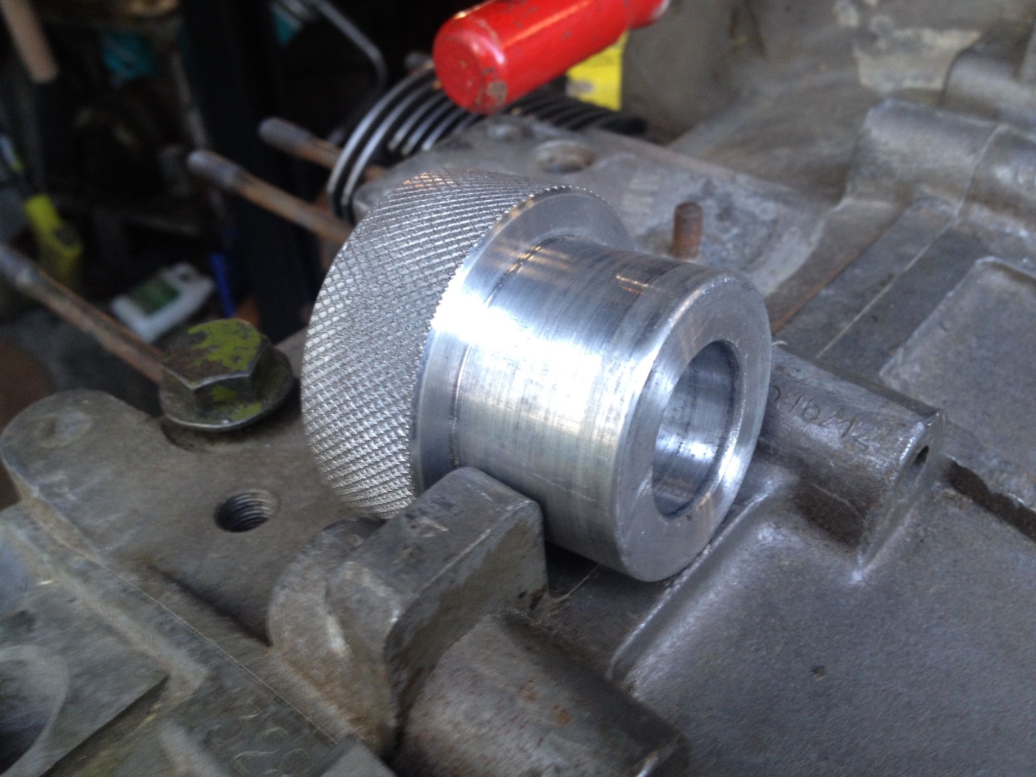 The tool holds the rod centered and let's me locate the center of the first pillow block on the bell housing. Fits up fine probably with in 0.001th" the height gauge.