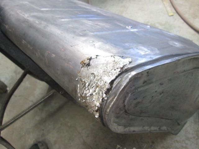 Big dents back here on both sides where the straps would be. I can only surmise this tank was retro fitted to a standard tanked car like mine and they ran into the