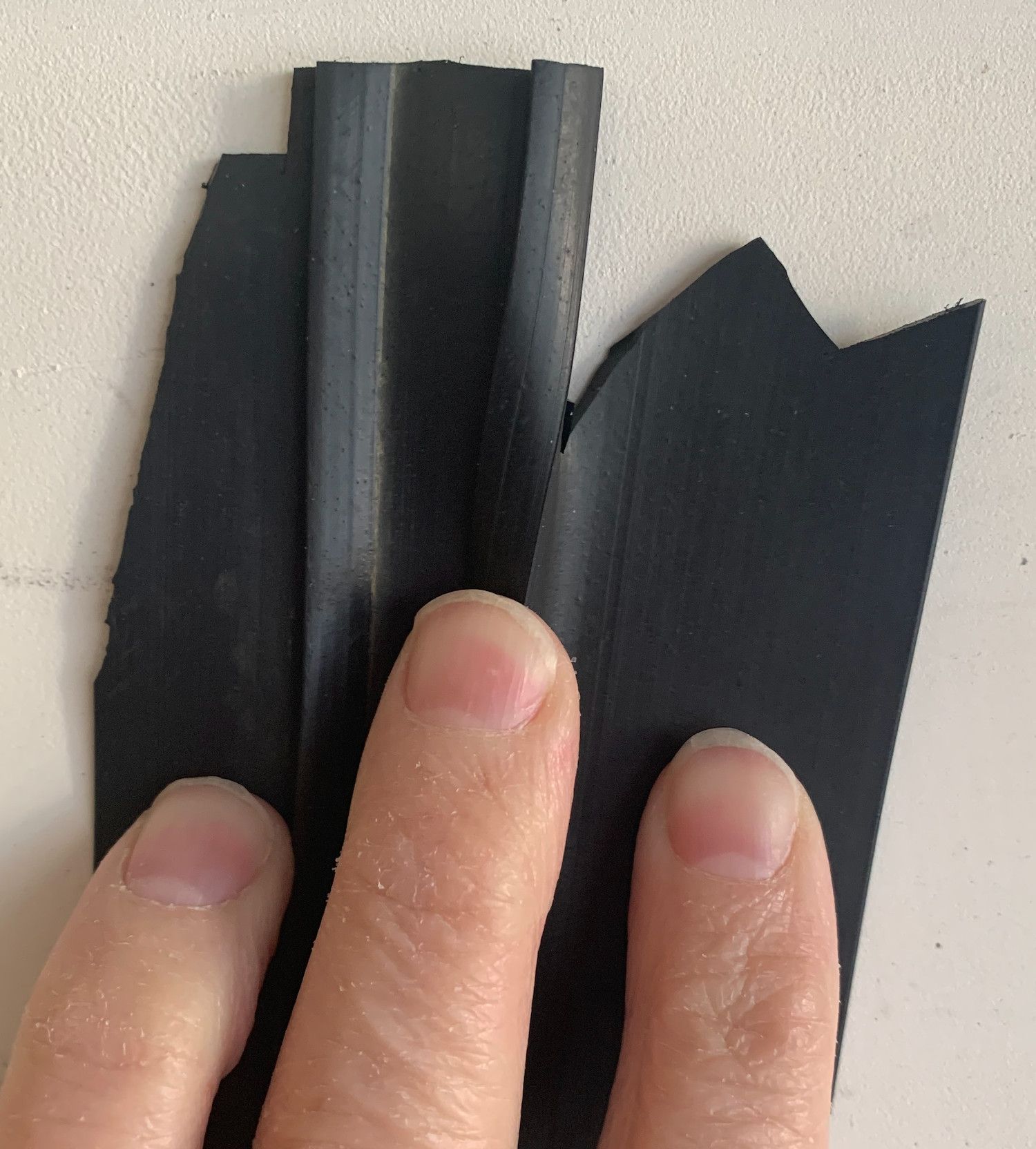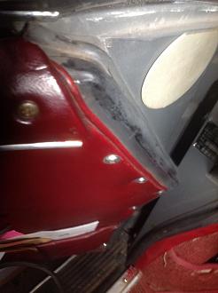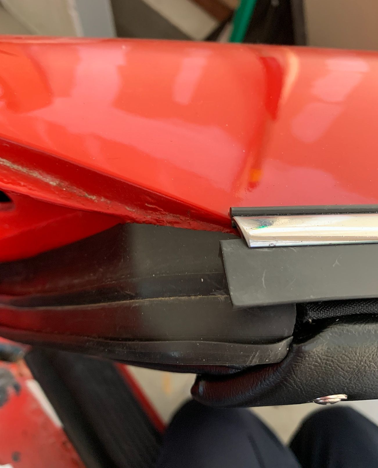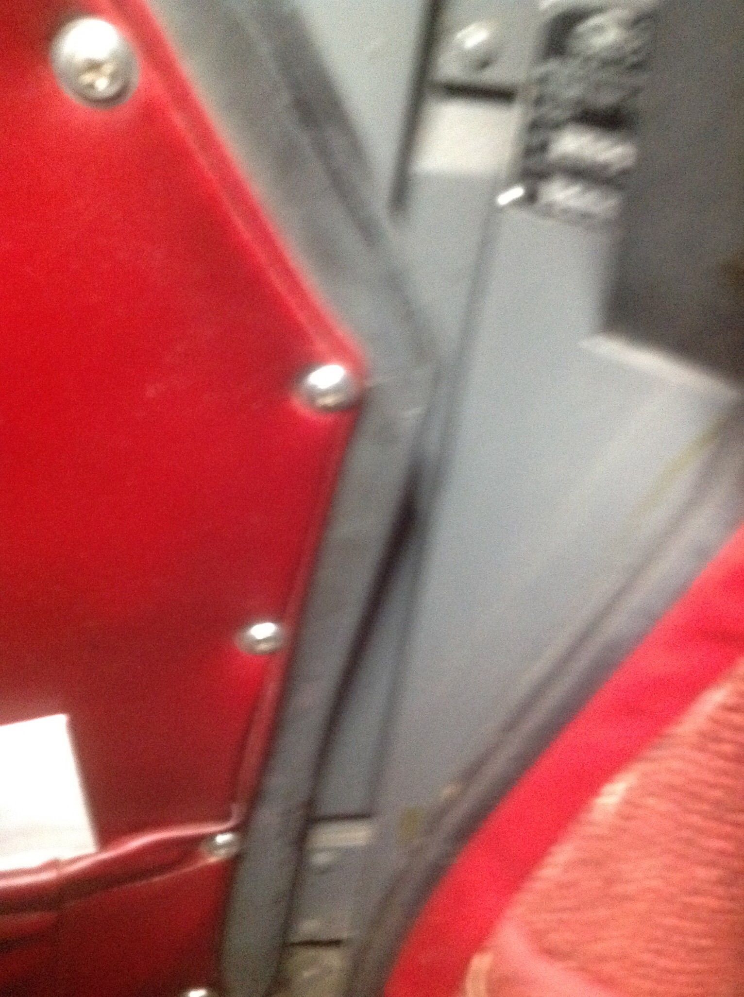 In this random example I found of a restored car that was up for sale, it looks like the person just sort of made a messy slice-and-smash approach. I guess that could work. As I am lining up my seal, I see if you cut it short, you end up with incomplete coverage and you could see body-colored metal at the top. If you make it stick up long, you end up having to smash (like the pic below) or something. I was considering making some fine razor blade cuts as I approach the top of the door and glueing the resulting pieces down as I go. (remove pie-wedge pieces basically to allow it to "fold and collapse" onto the door metal at the top). (click for huge version)