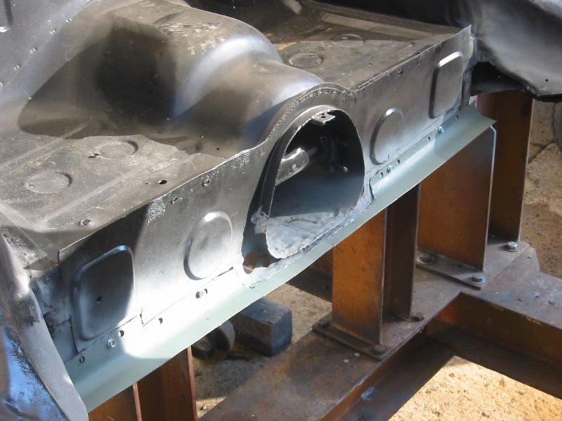 Dean welds on the extra material needed at the motor mount area then the holes and relief are machined in. I'll let you in on a little secret I learned completely by the accident of having that particular transmission on hand. A 1969 magnesium version 901 transmission's bell housing for whatever the reason has all those reliefs and embossments in it for an almost direct fit with a 356 hoop. I simply drilled the 4 holes in the reliefs and had the hoop bolted right up to it. Anyway, its another way of skinning this cat. Keep up the great work!!!!!!
