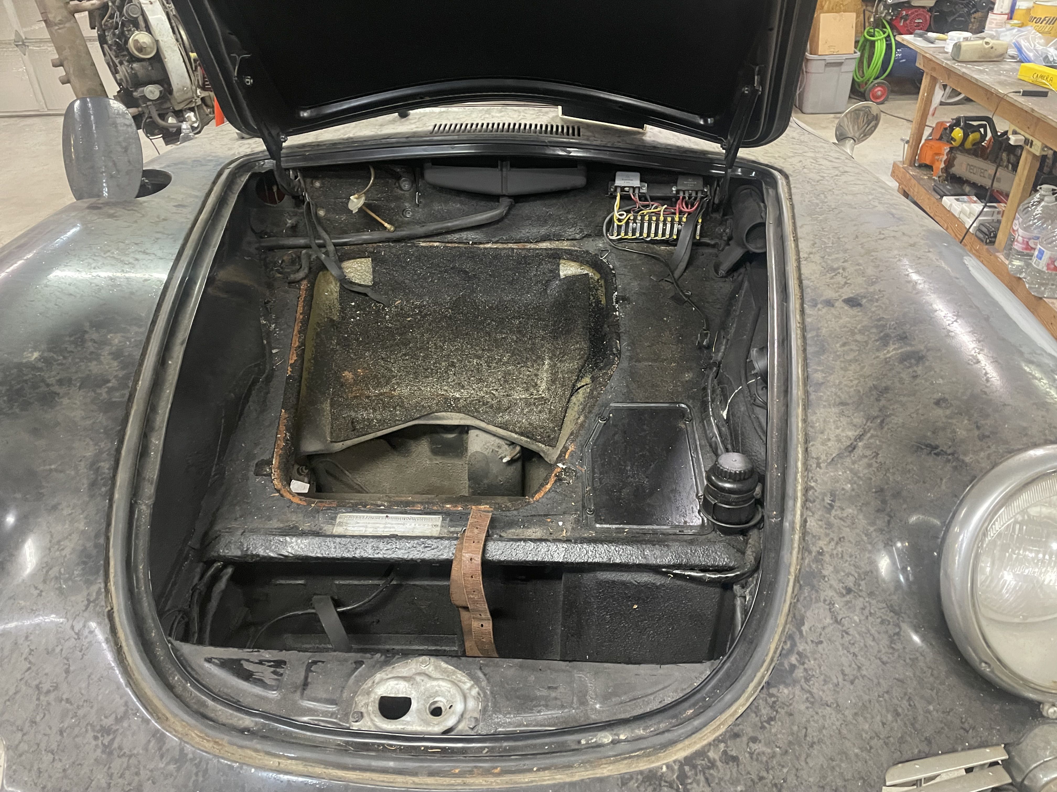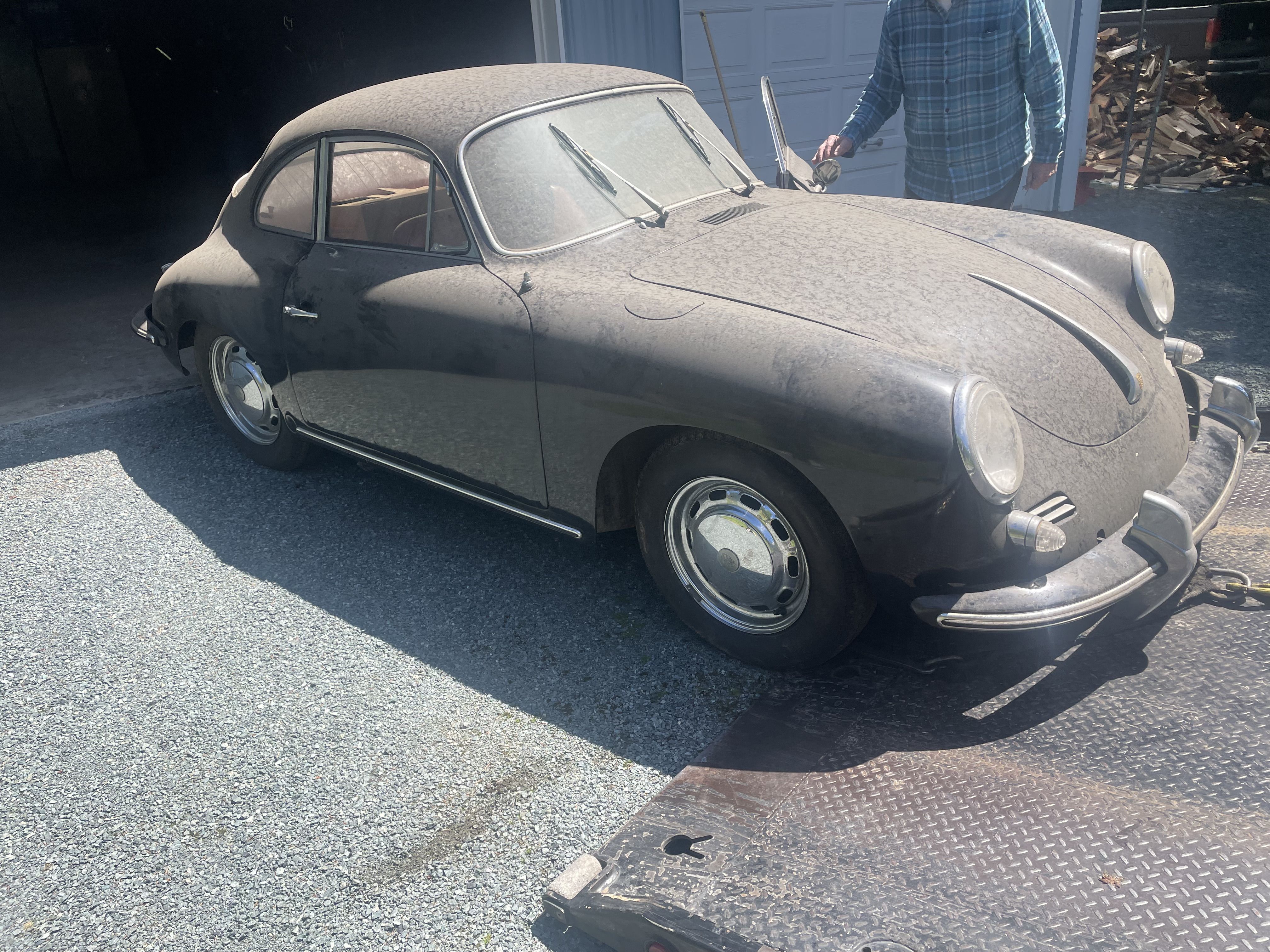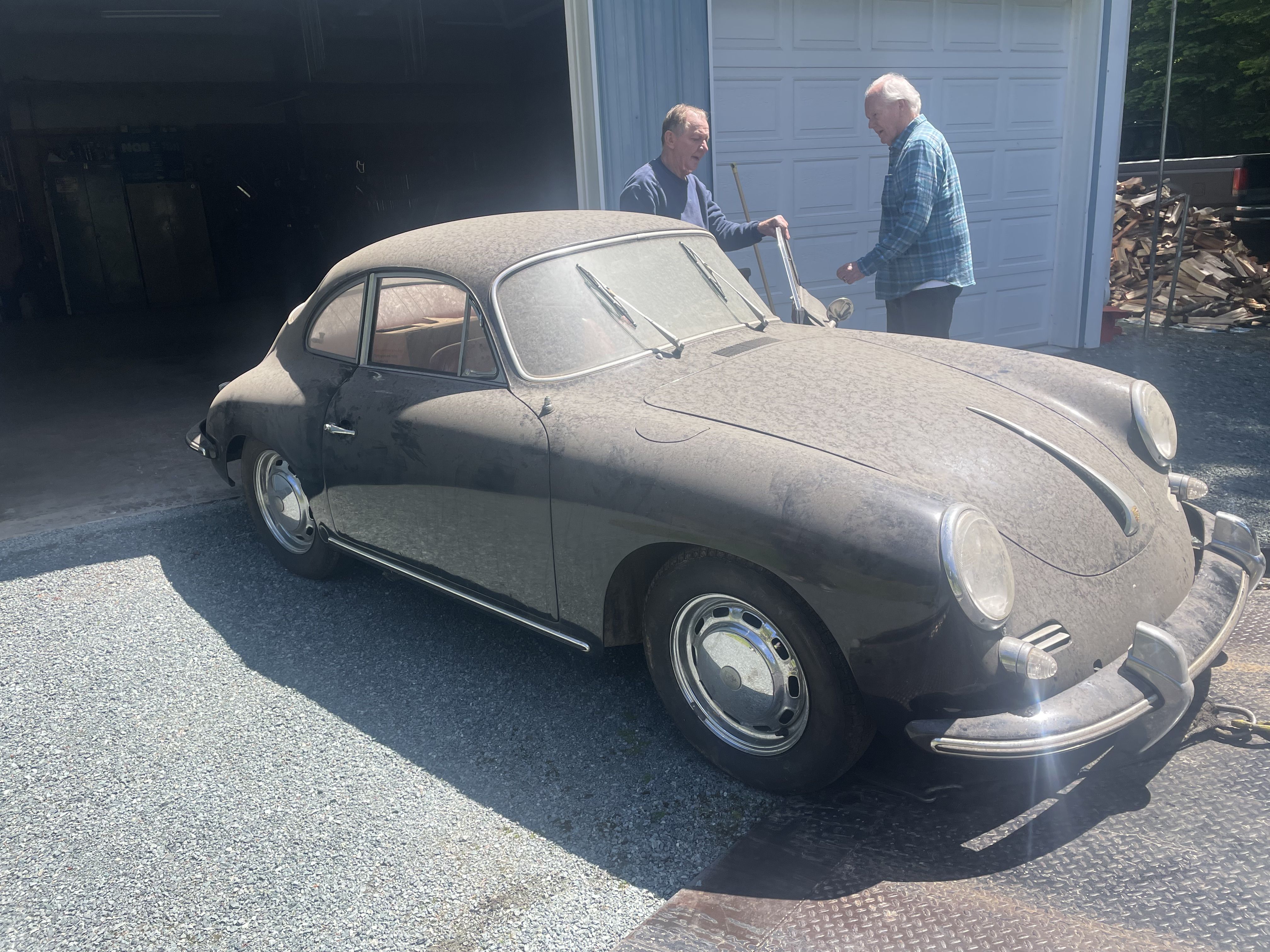 Been off line for a while doing normal 356 stuff. Got an email a six months ago about a car in a Publix storage unit, 50 miles away. The matching numbers, original owner, nice surviving example. He wanted to get it back on the road, then painted. It had been in storage for 38 years. We went down a few months to look it over, a complete car just. It had been serviced and then parked in the locker. OK we can start in March, by ready for spring…. It finally got here this afternoon …