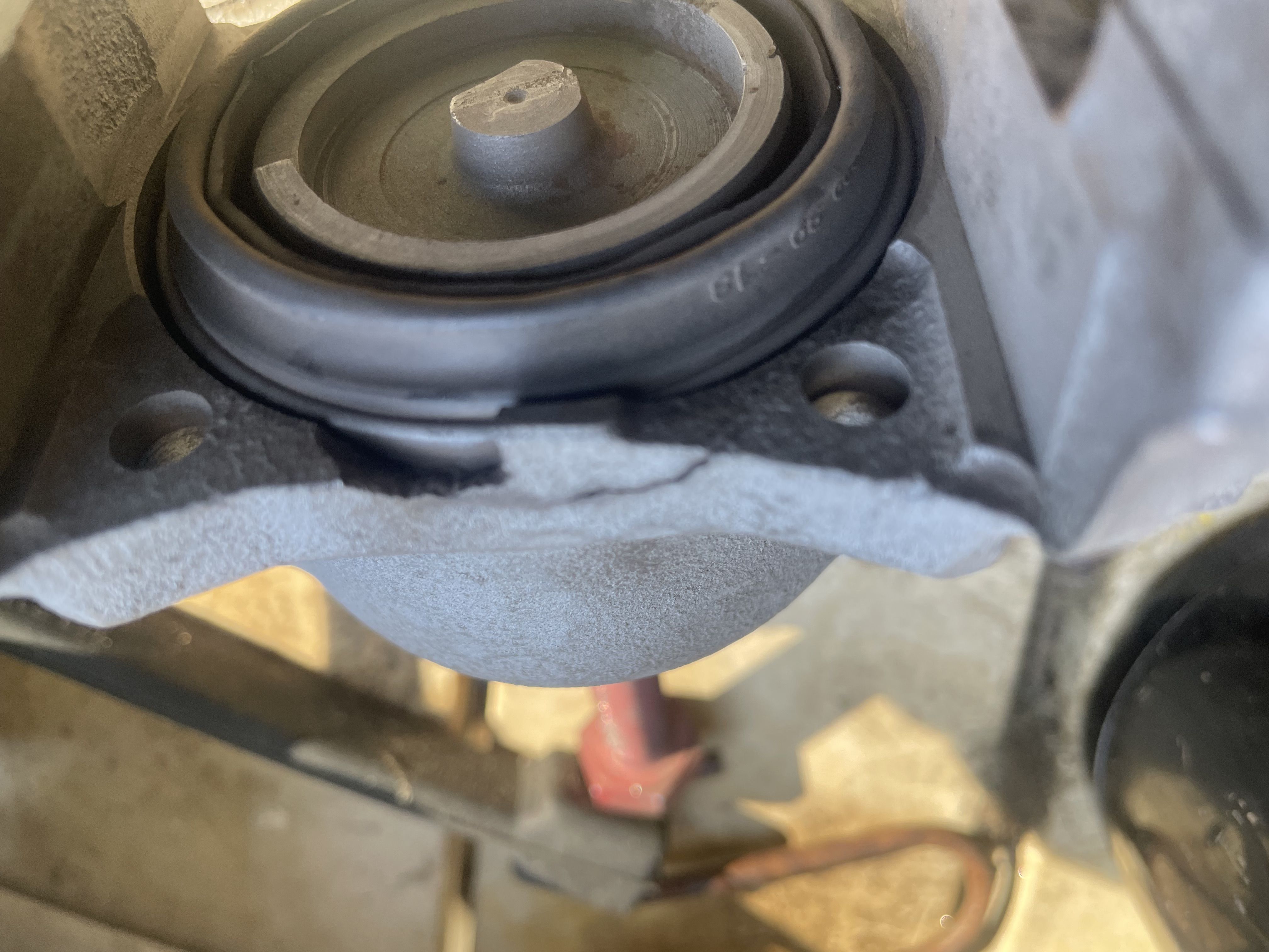 Motors out, of course it’s frozen so far, but we did not put a big load on it. Here couple photos from the endoscope through the plug holes. It had a mouse, but it did not last long. Look like it was storing up rat poison in the bellhousing, but stopped for lunch. No droppings or urine stains.