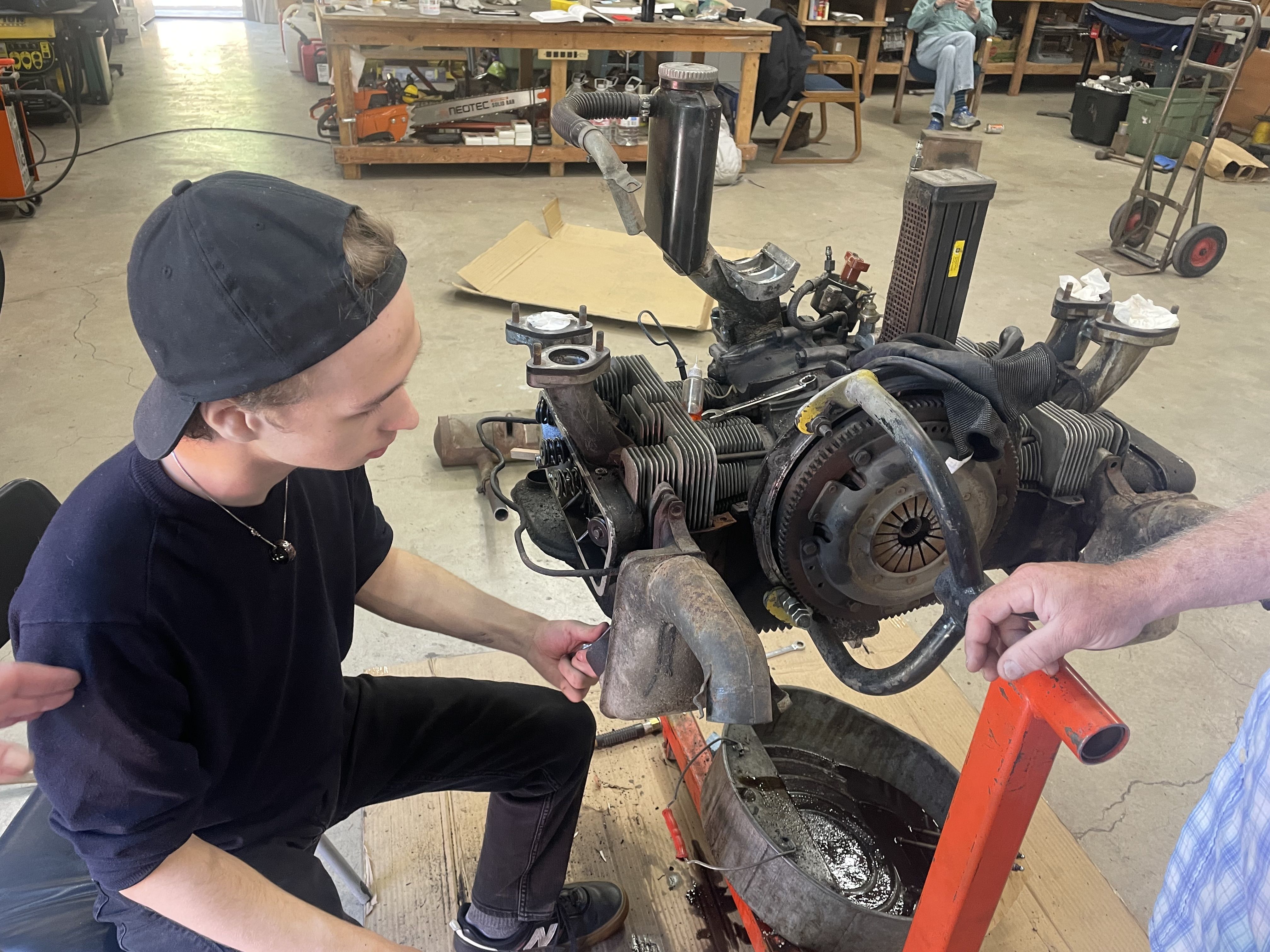 Engine day. Started to disassemble the car today. First Saturday of the month is club car and coffee. Had a few guys over after to look at the project. I also get a helper Dominic Sharp., the grandson of Bary Sharp. Barry has an extremely well done 912. Dom and rebuilt the entire Brake system a month or so ago. He wants to learn the mechanical bits for Porsches, and 60 years younger than me, it’s “ here do this time” . Like when I was his age, geezers showing me how to do stuff.