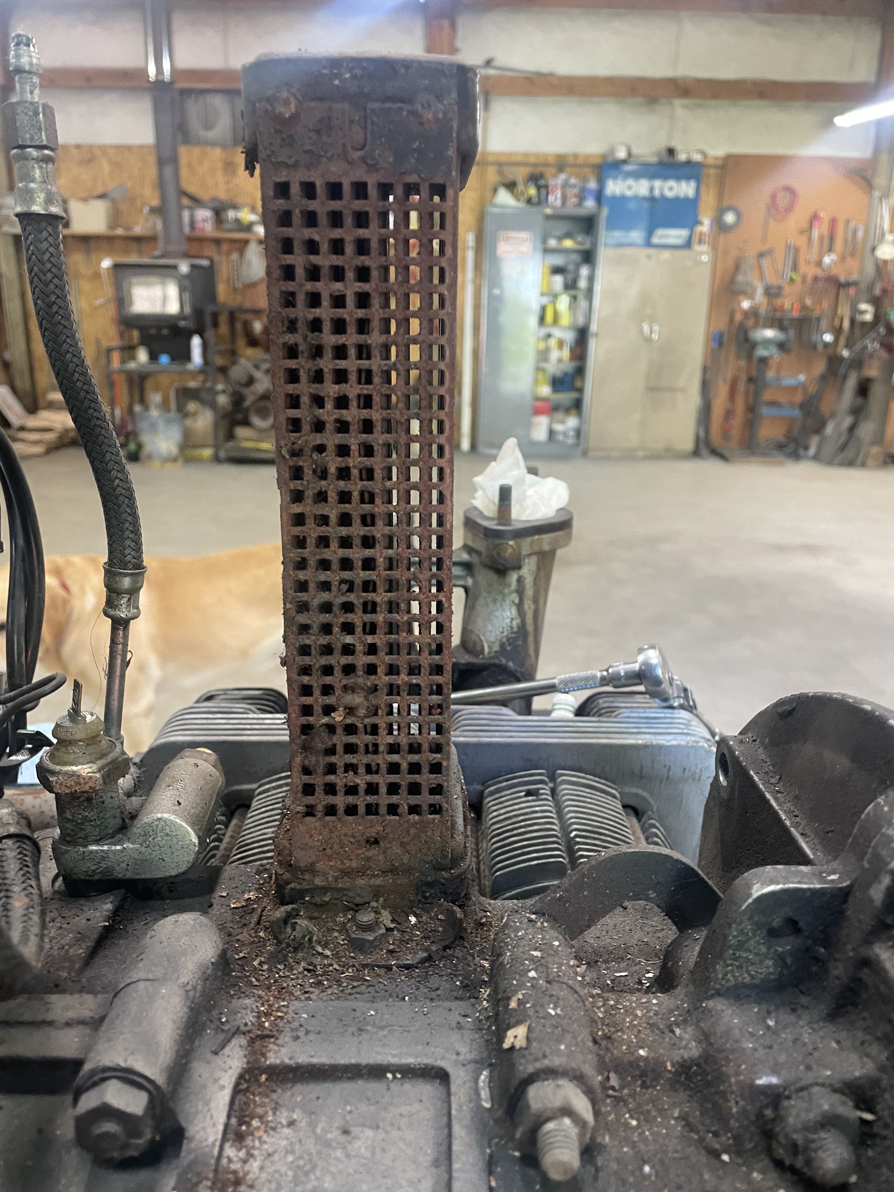 Good news you can see through the oil cooler, no leaks, fuzz or rodent damage.