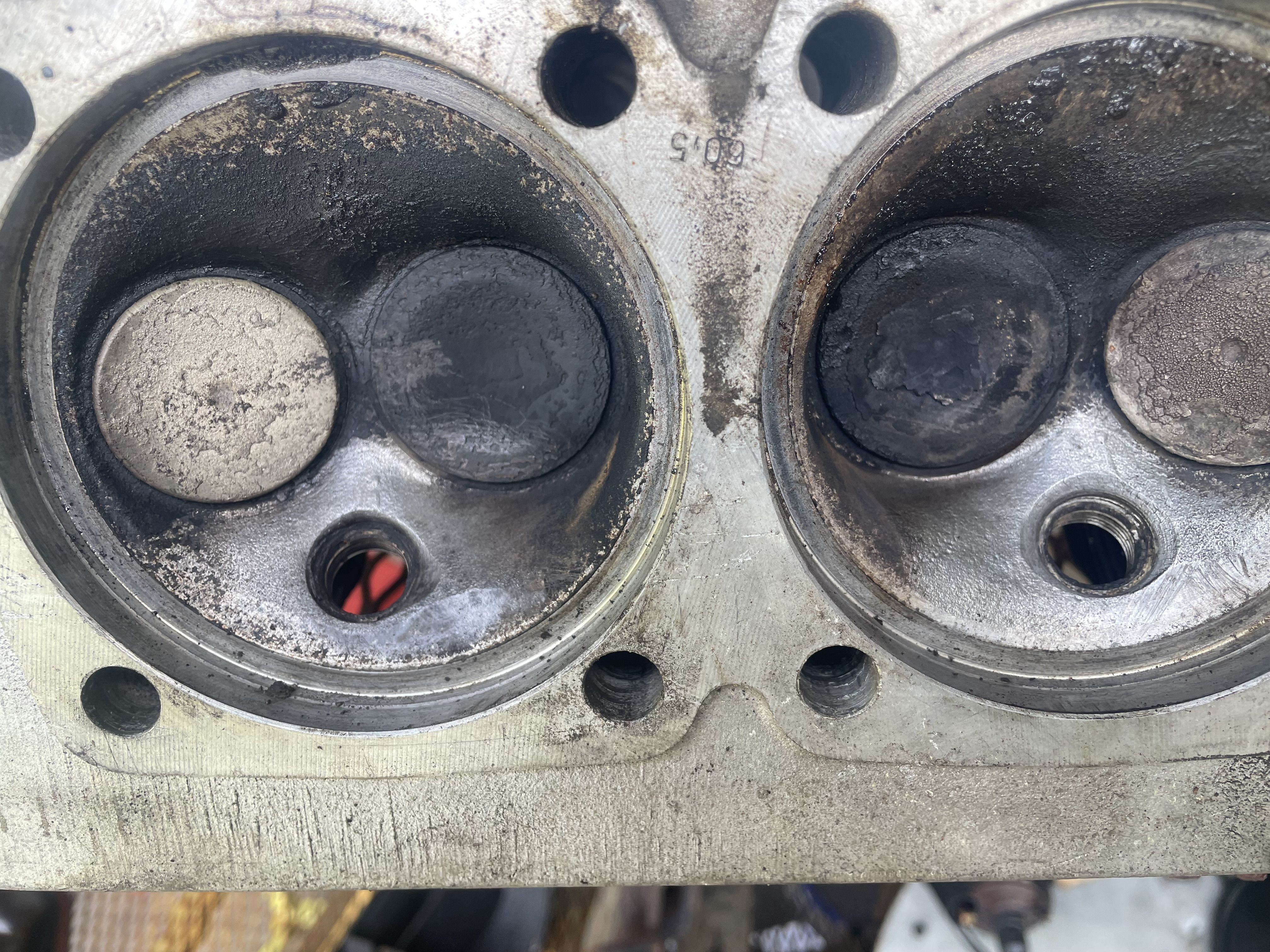 Spent the day cleaning and removing stuck and broken piston rings. Pistons look OK after cleaning Heads held pressure for the leak down, (removed the rockers) no leaks. stuck rings and 1/2 inch of oil on the piston tops helps hold the pressure. The heads Do Not have cracks around the plugs so they should be good. Will still remove the carbon residue, but look OK. I need to measure the spring heights, but overall they look good.