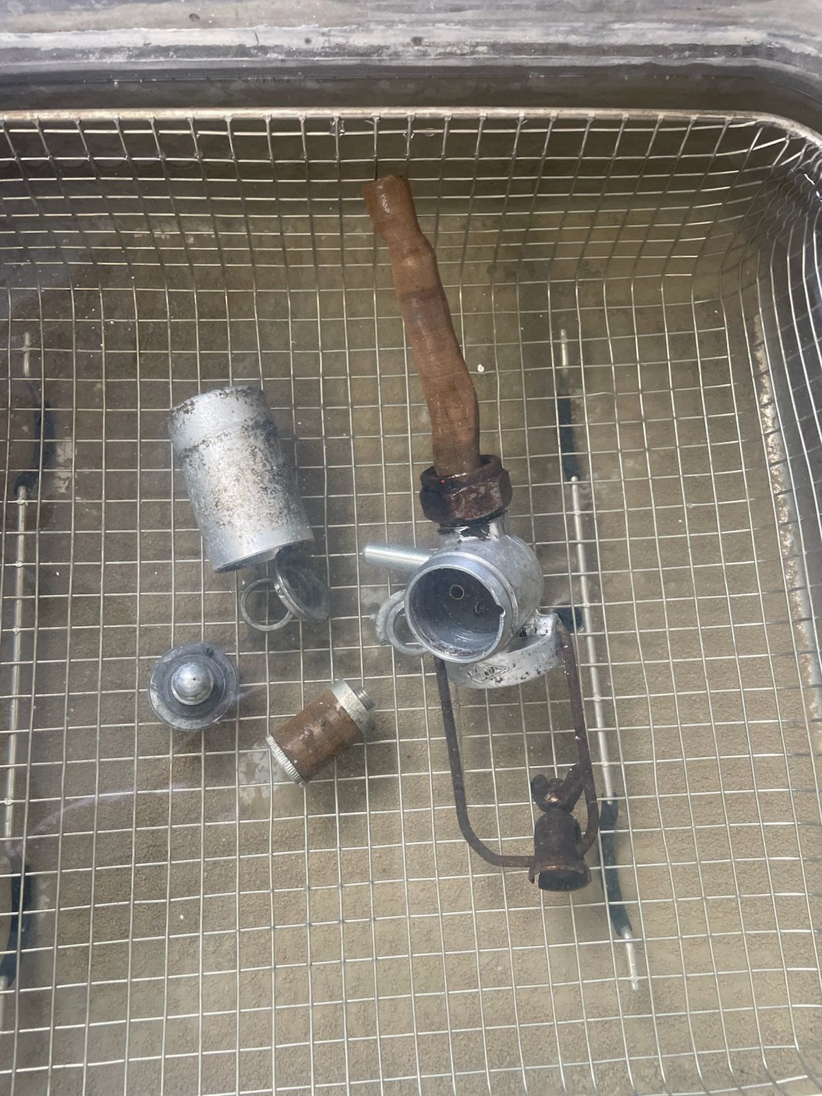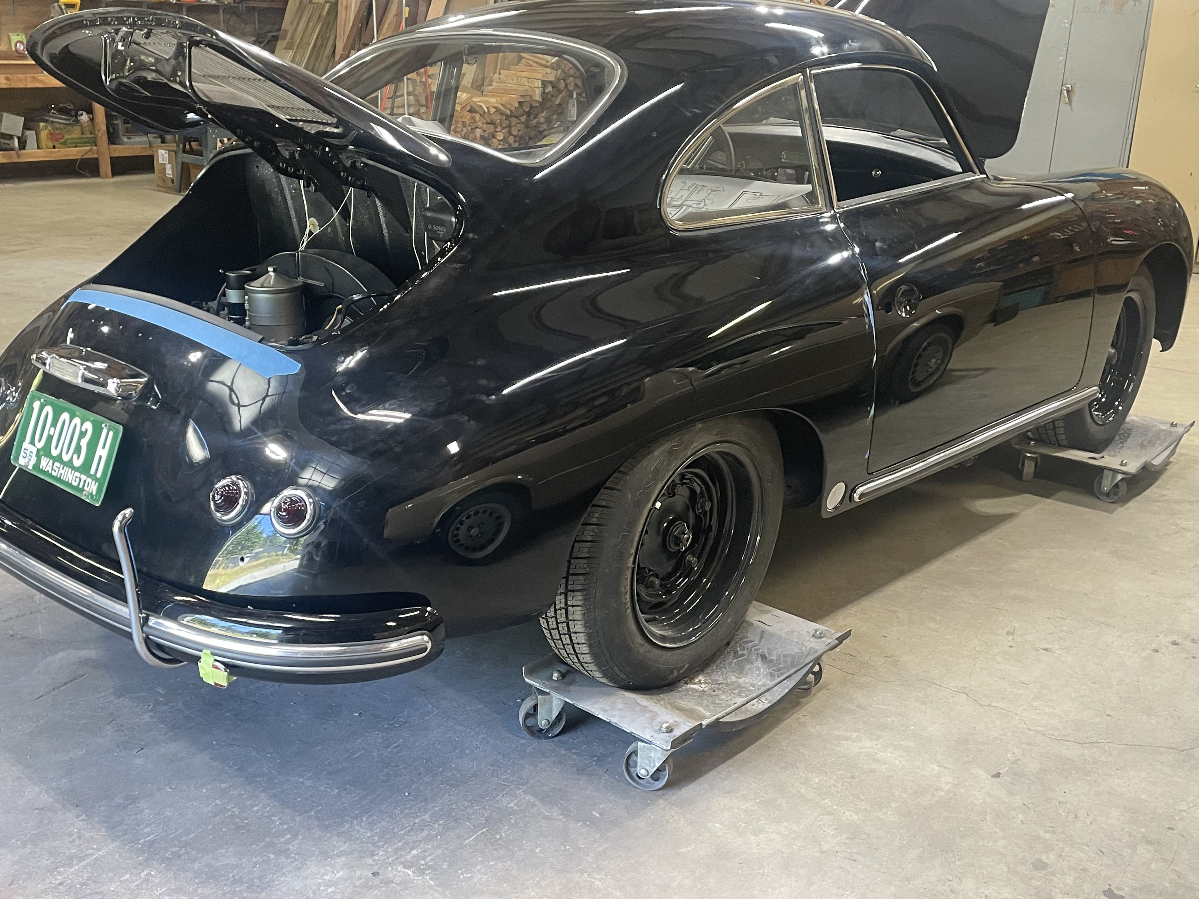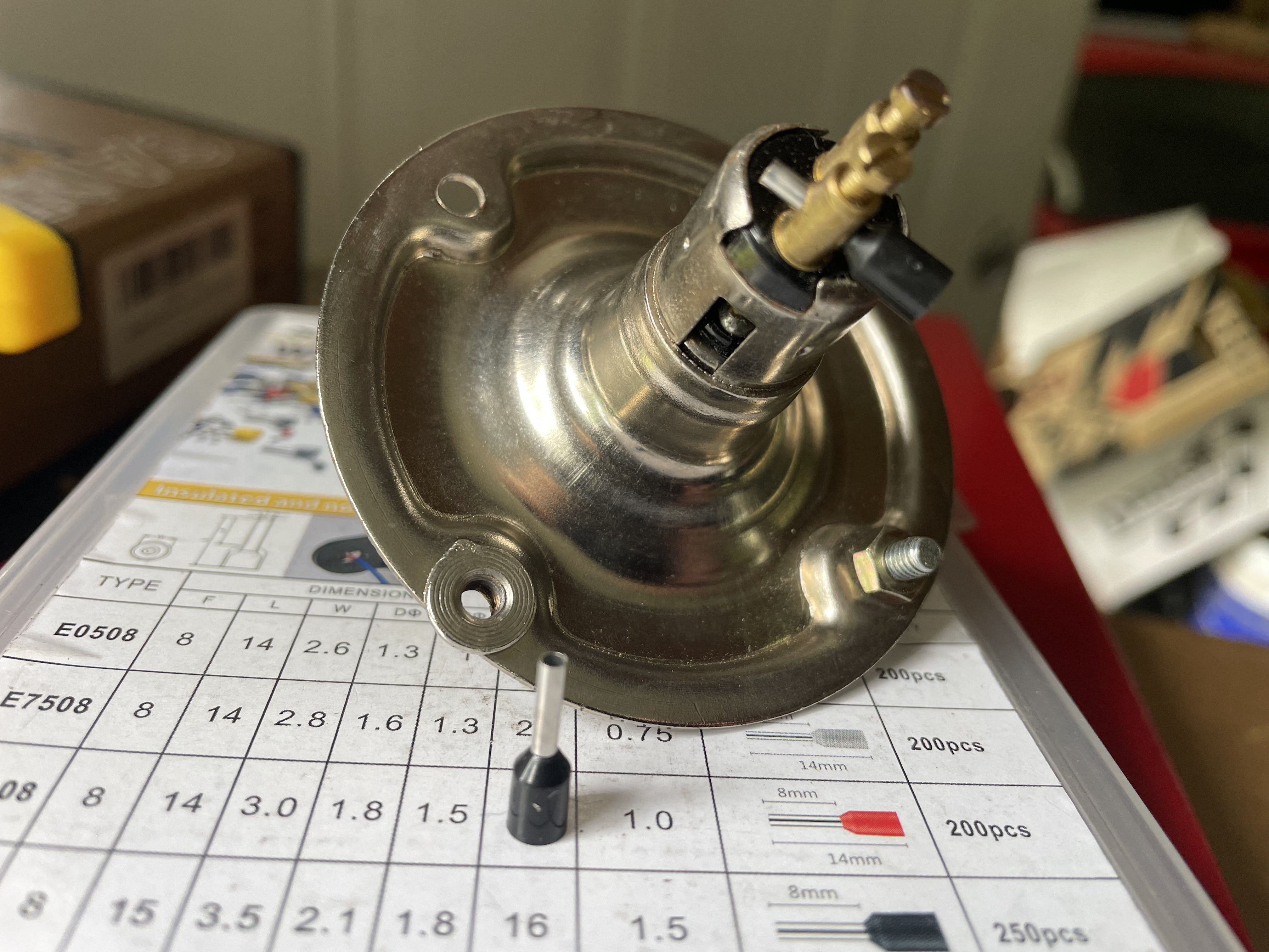 Spent the morning heat shrinking and re routing the rear harness. Installed a remote starter switch for maintenance and hard starts. Just a simple 12 mm marine momentary switch next to the voltage regulator. Wire from Batt on the regulator, through the switch to the 50 spade on the starter solenoid. I will also install a hot start relay on this one at the same time. So both the key switch and the button power the coil on the relay. Simple and should be done on all the 356’s. On a funner note today, rebuilding the carburetors. went through the dip. then the ultrasonic cleaner, and blow out the passages with air. I reassembled them, they looked very good, went to leak check and set the float level . I leak check by putting 20cc of gas in the vent tube, and let them sit, then look for shinny or wet spots. Then I run the pump and fill the bowl an check the level.