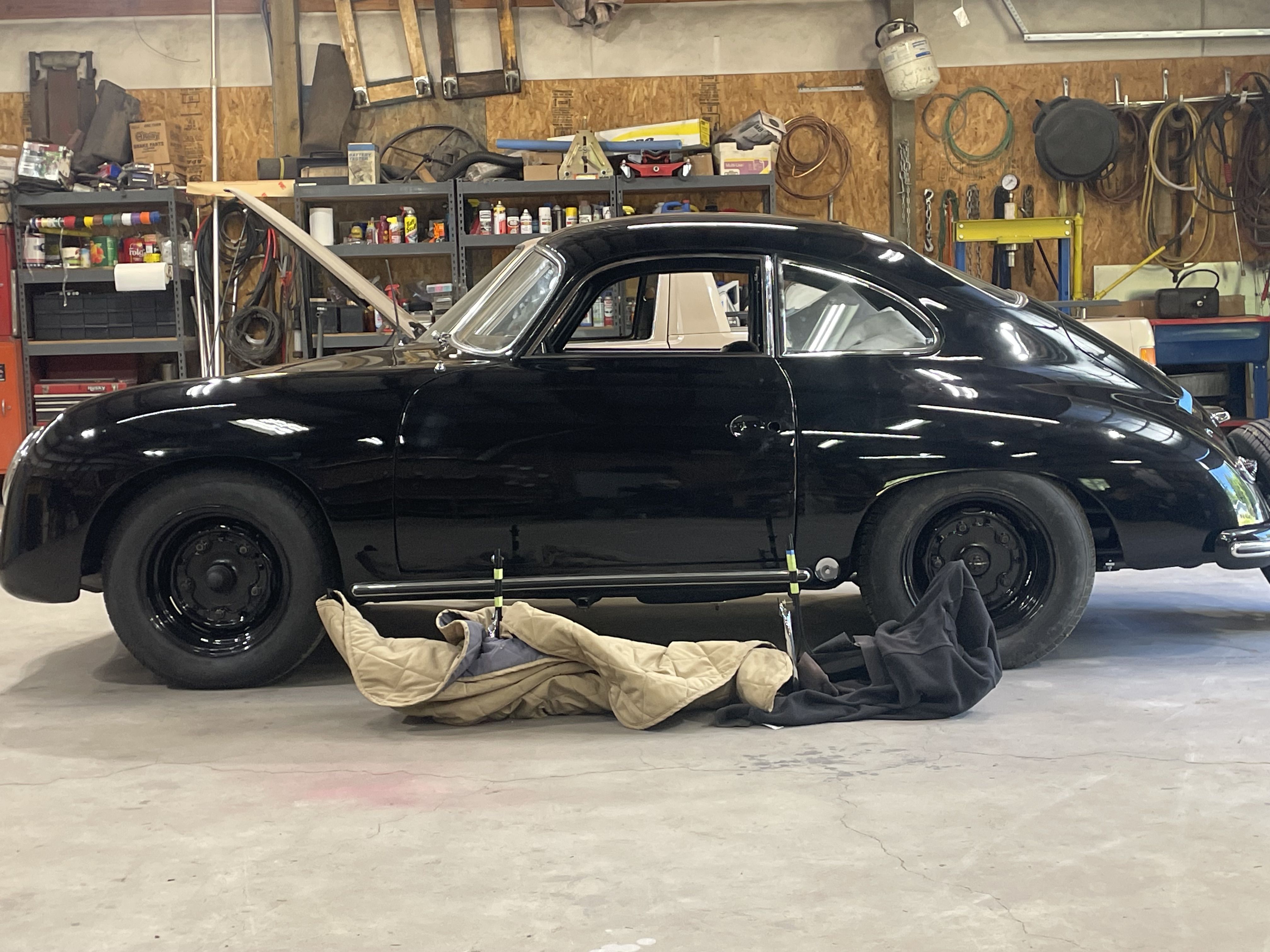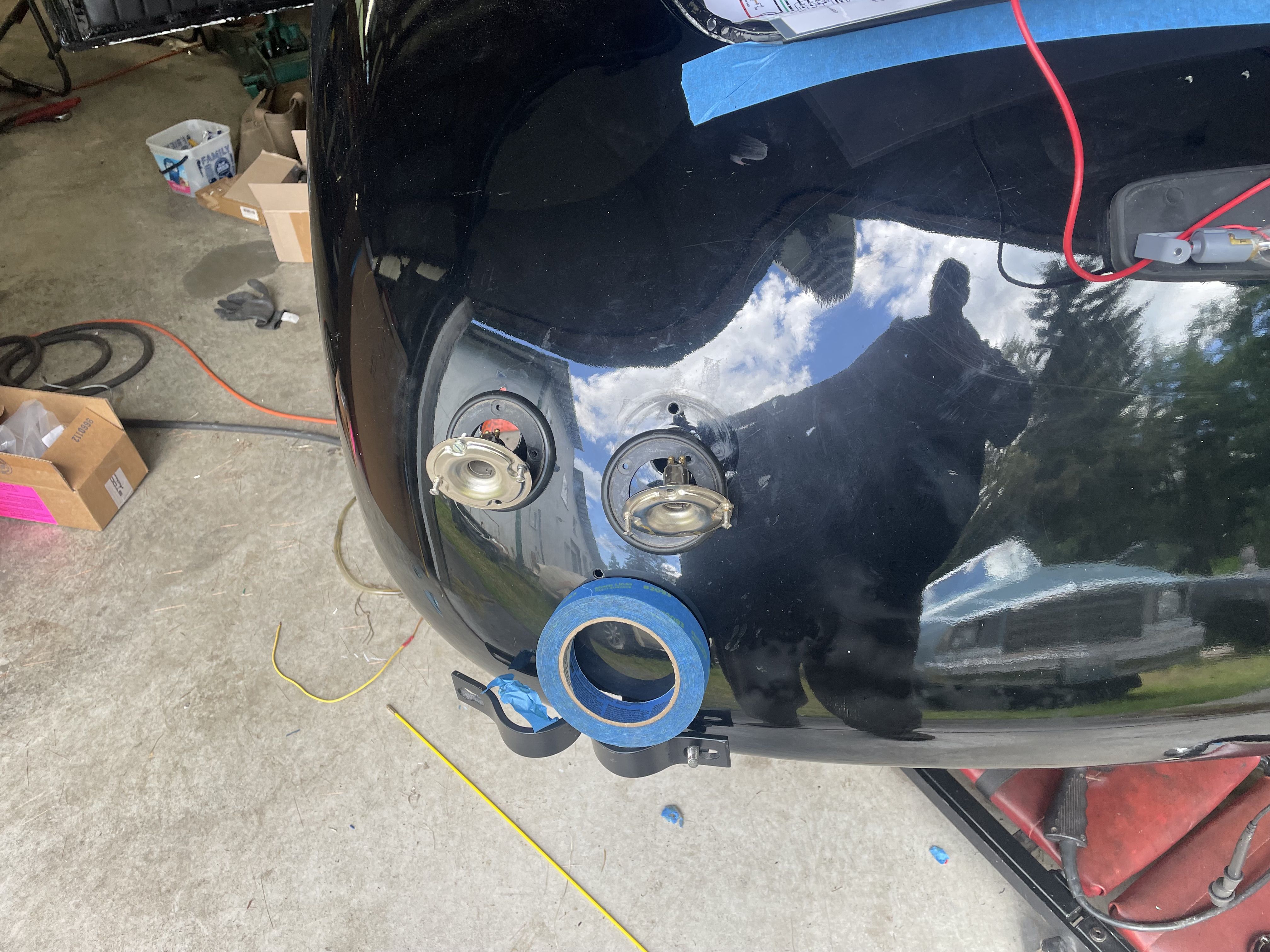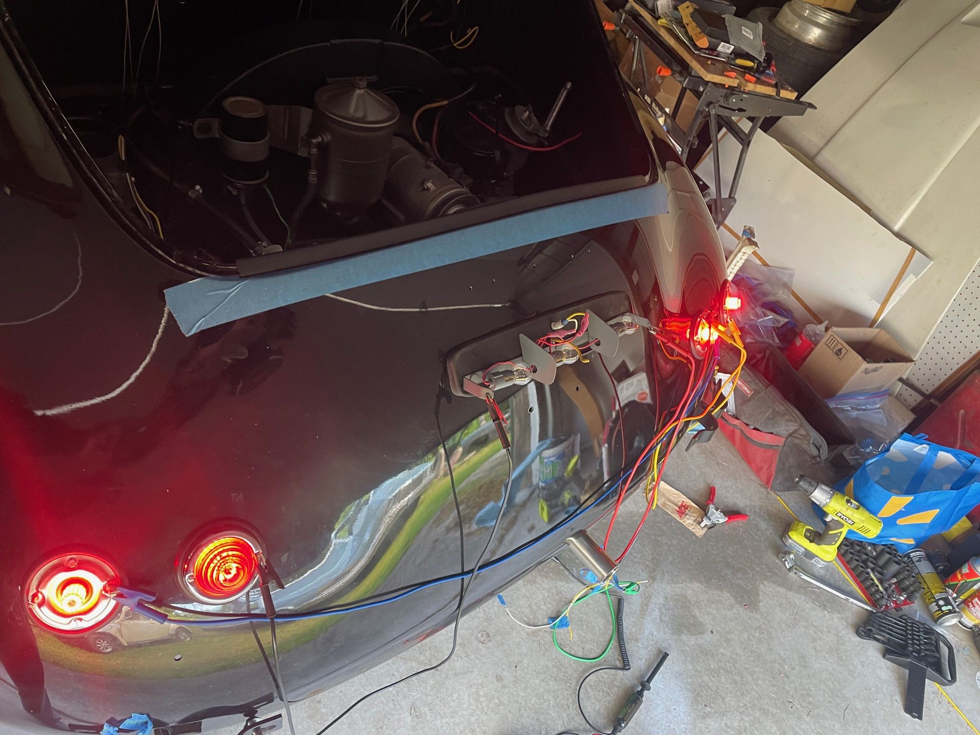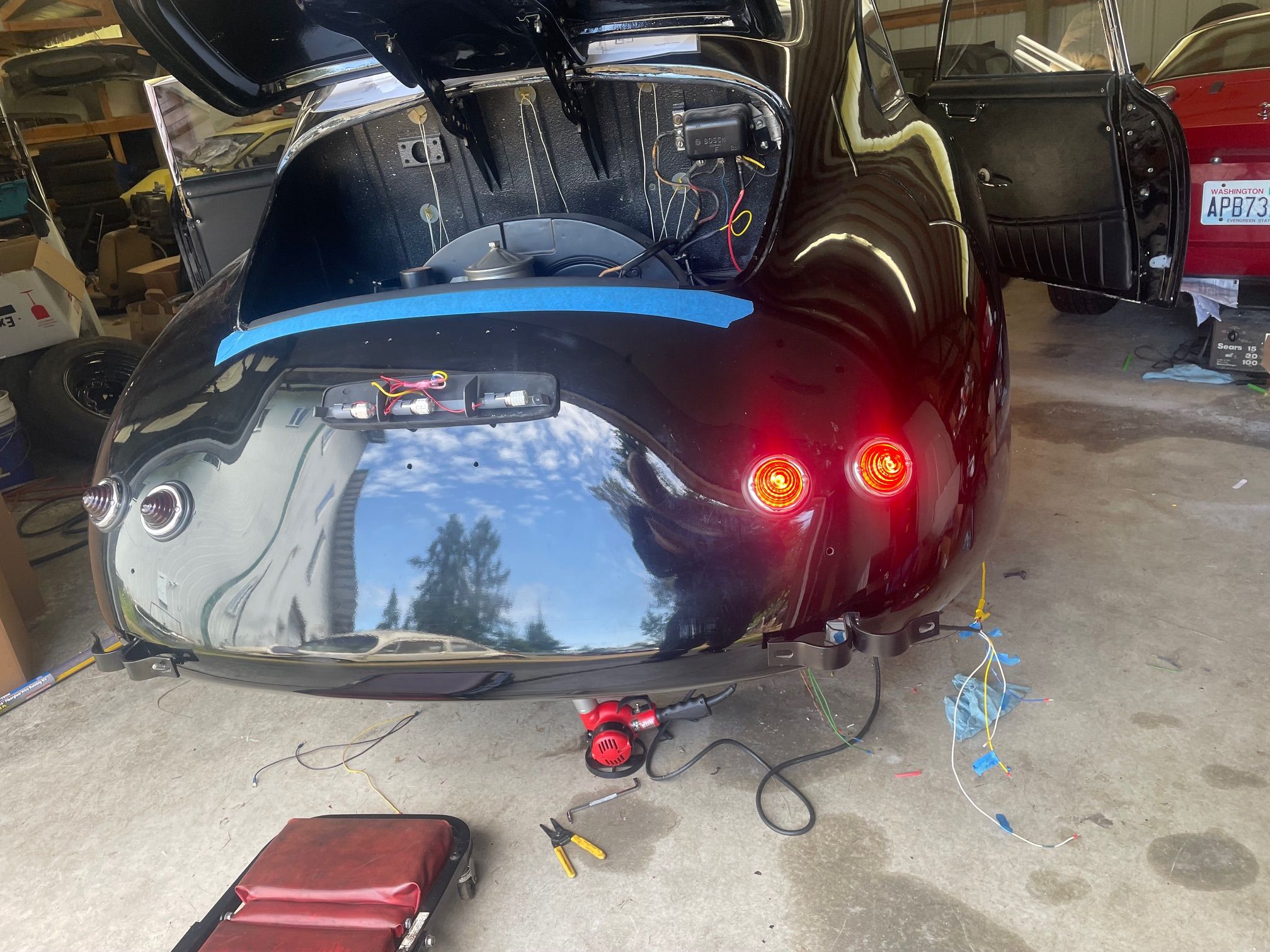 Spent the morning heat shrinking and re routing the rear harness. Installed a remote starter switch for maintenance and hard starts. Just a simple 12 mm marine momentary switch next to the voltage regulator. Wire from Batt on the regulator, through the switch to the 50 spade on the starter solenoid. I will also install a hot start relay on this one at the same time. So both the key switch and the button power the coil on the relay. Simple and should be done on all the 356’s. On a funner note today, rebuilding the carburetors. went through the dip. then the ultrasonic cleaner, and blow out the passages with air. I reassembled them, they looked very good, went to leak check and set the float level . I leak check by putting 20cc of gas in the vent tube, and let them sit, then look for shinny or wet spots. Then I run the pump and fill the bowl an check the level.