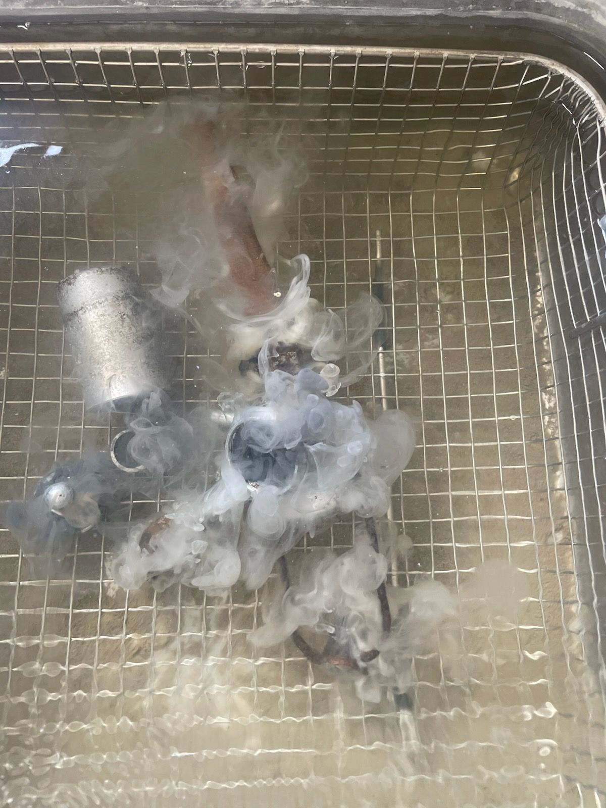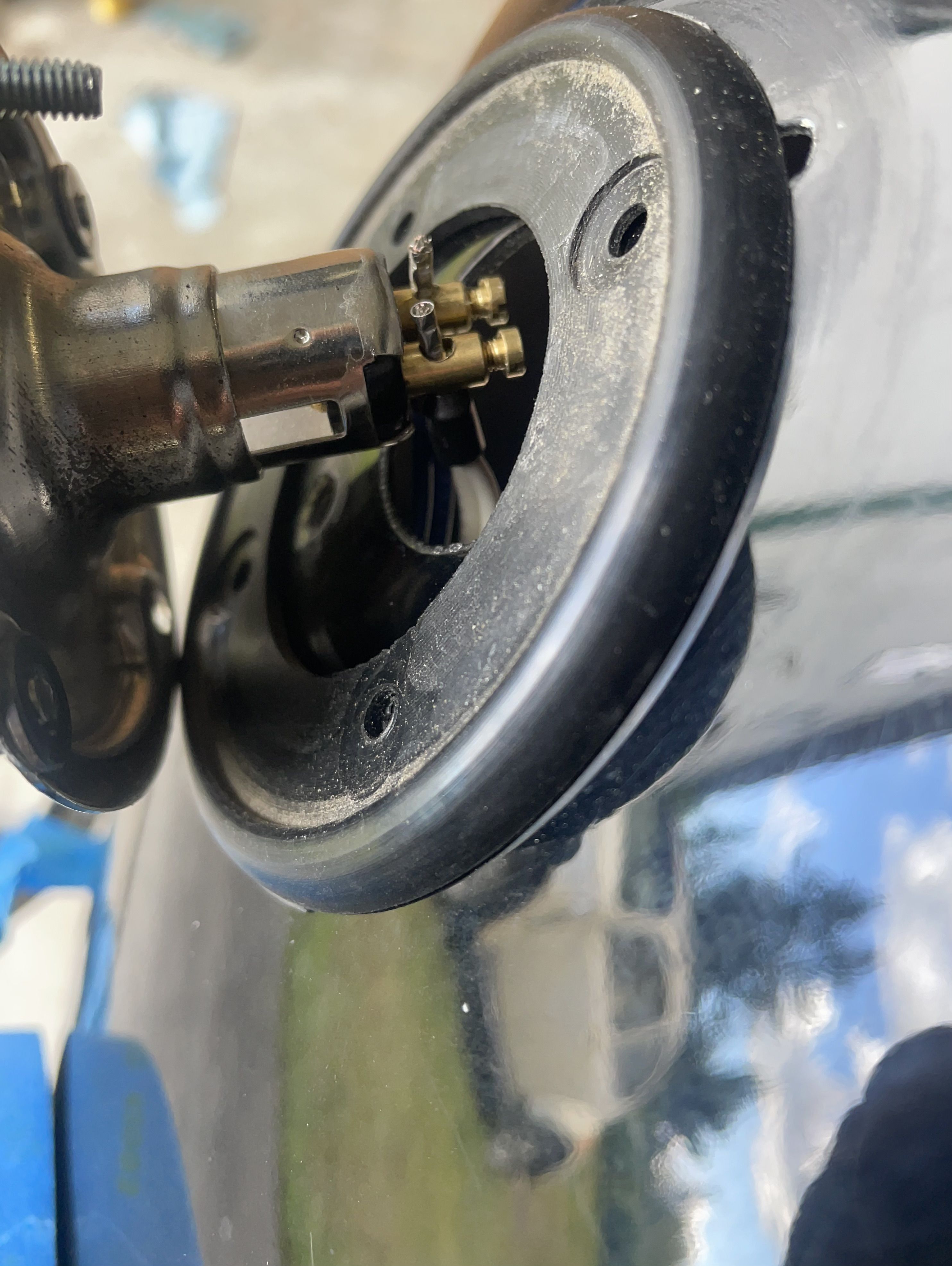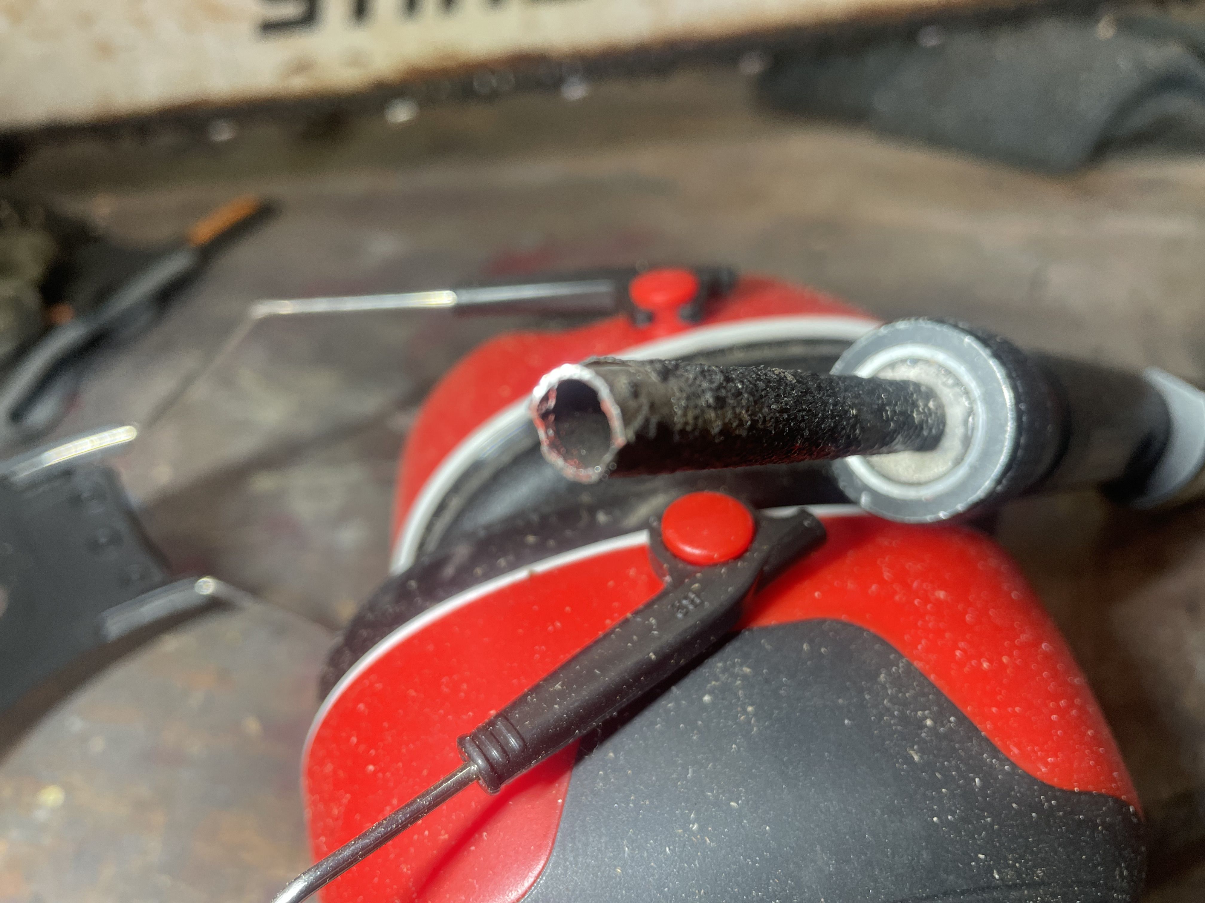 Well one wont fill. pump runs, no fuel in the P-Tool. Pop the top, lift it run the pump. no gas through the float valve... Pull the valve, blow through it is good, try blowing through the banjo fitting, no luck, Ah Ha passage plugged, blow it with air, no luck. probe it with wire, it goes through and see some black debris, keep probing, the put a plastic tube form a aerosol can it from the small end and push out the carcass of a beetle from the passage. it was about the size of the passage. I have no Idea how long it ha been in there.