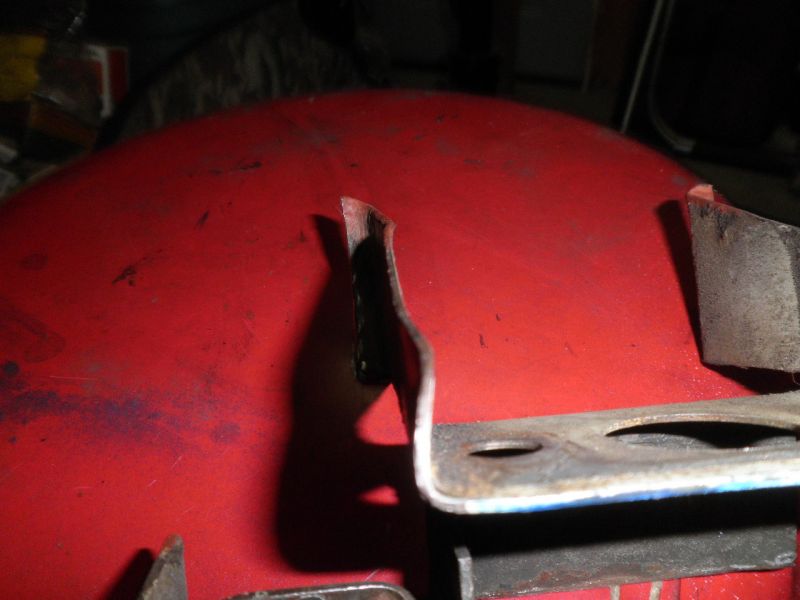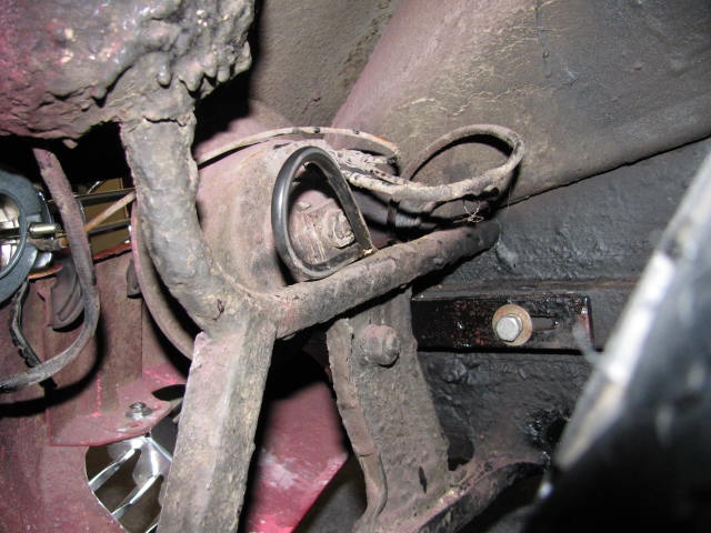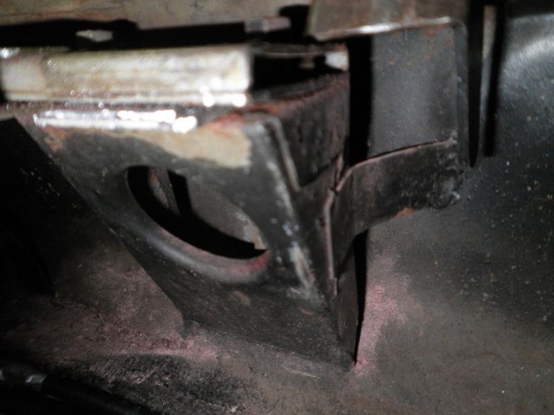 Continuing my hood latch assessment, today I took a look at the striker/latch alignment on the PreA. Turns out the striker does have the same nut welded in at an angle on the retaining plate. With this latch design, it appears to be critical that the striker be very perpendicular to that latch, particularly fore/aft. There was a significant angle difference fore/aft so I ended up shimming the back of the latch quite a bit to get the latch square to the striker. You can see the two pieces of sheet metal that I placed at the rear of the latch to raise it up: