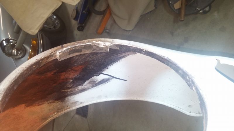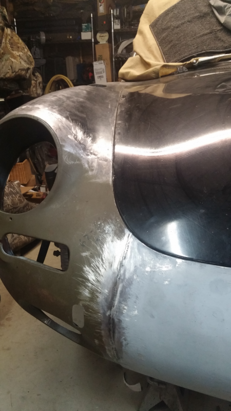 Never too late. All tack welds which can be cut through easy enough. A little history. This is the original nose that I removed as it was full of lead with many small dents all over. Lead has been removed and dents dollied out. So, the top old plug welds and drain holes, along with 2 trim screw holes were all lined up to plug weld back to inner. The drivers side cut line was good as originally cut until about halfway down, where I slight overlap occurred. Could be from stretched metal after all the hammer dolly work on both sides of cut. I'm not quite sure what to look at other than the bulge Jack referred to at wheel opening. I don't see bulge, but can post pics from front and behind on both sides if that would help those with experience on more than one 356 see how it looks. As I stated a page or so above, passenger side front of wheel opening is pretty rigid and would be hard to move in or out. I will take some measurements and double check before finishing welding. As for the vertical butt joints, they are nice and smooth cross car.