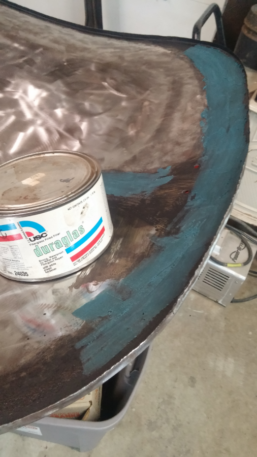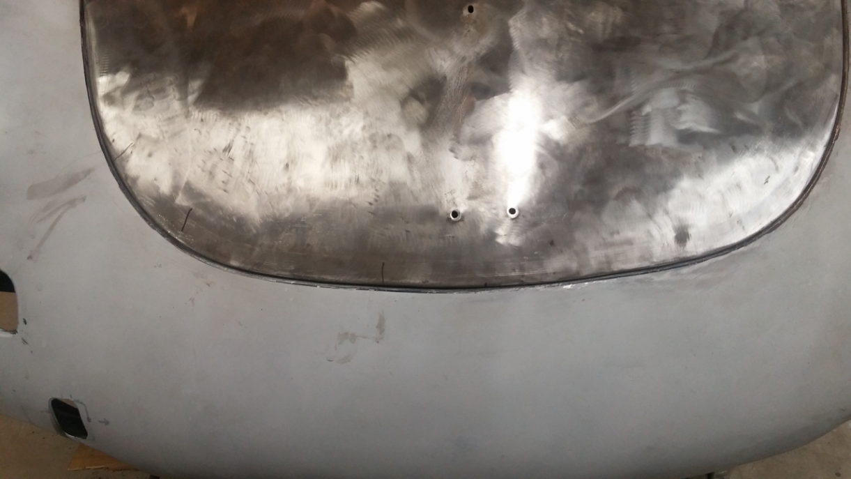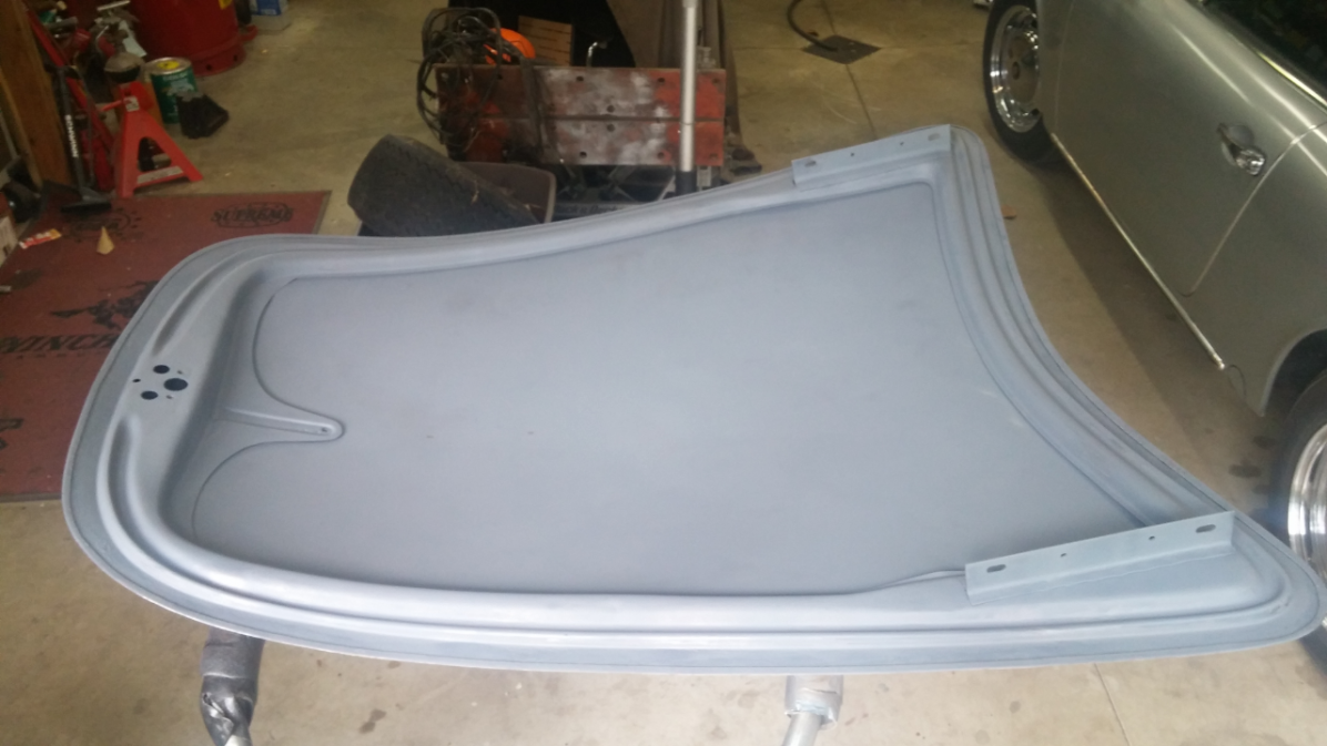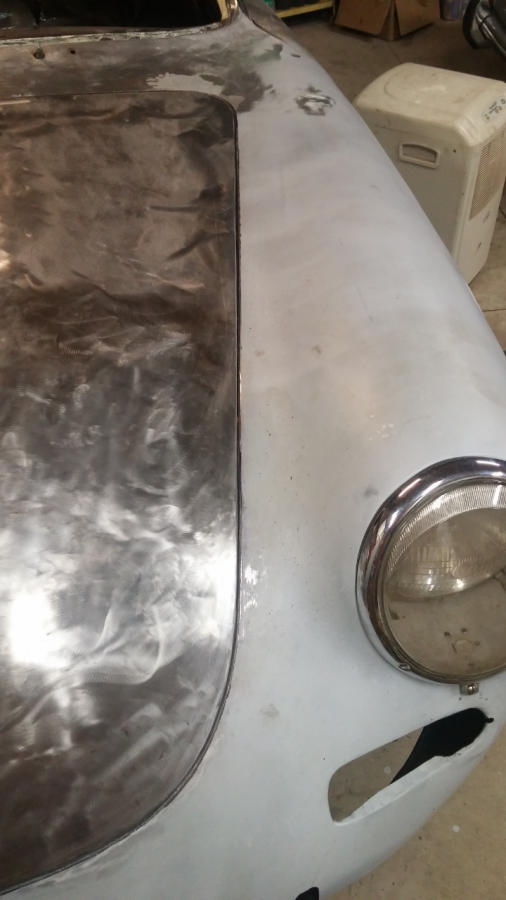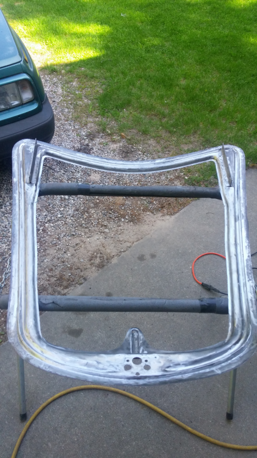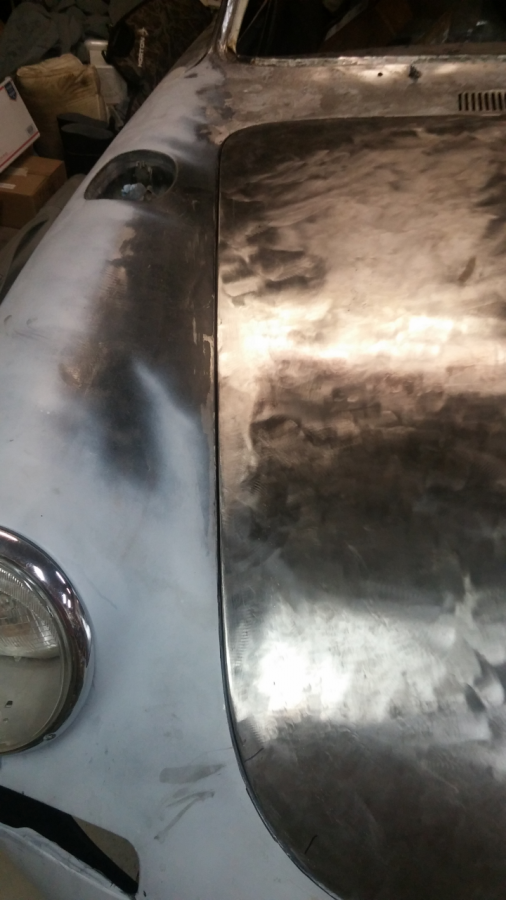 It took 2 old fart work sessions to strip thr rust and paint off the hood and frame, along with smoothing the kink dents. The longest and most tedious part was getting the paint off of the frame as hardly any smooth surface.