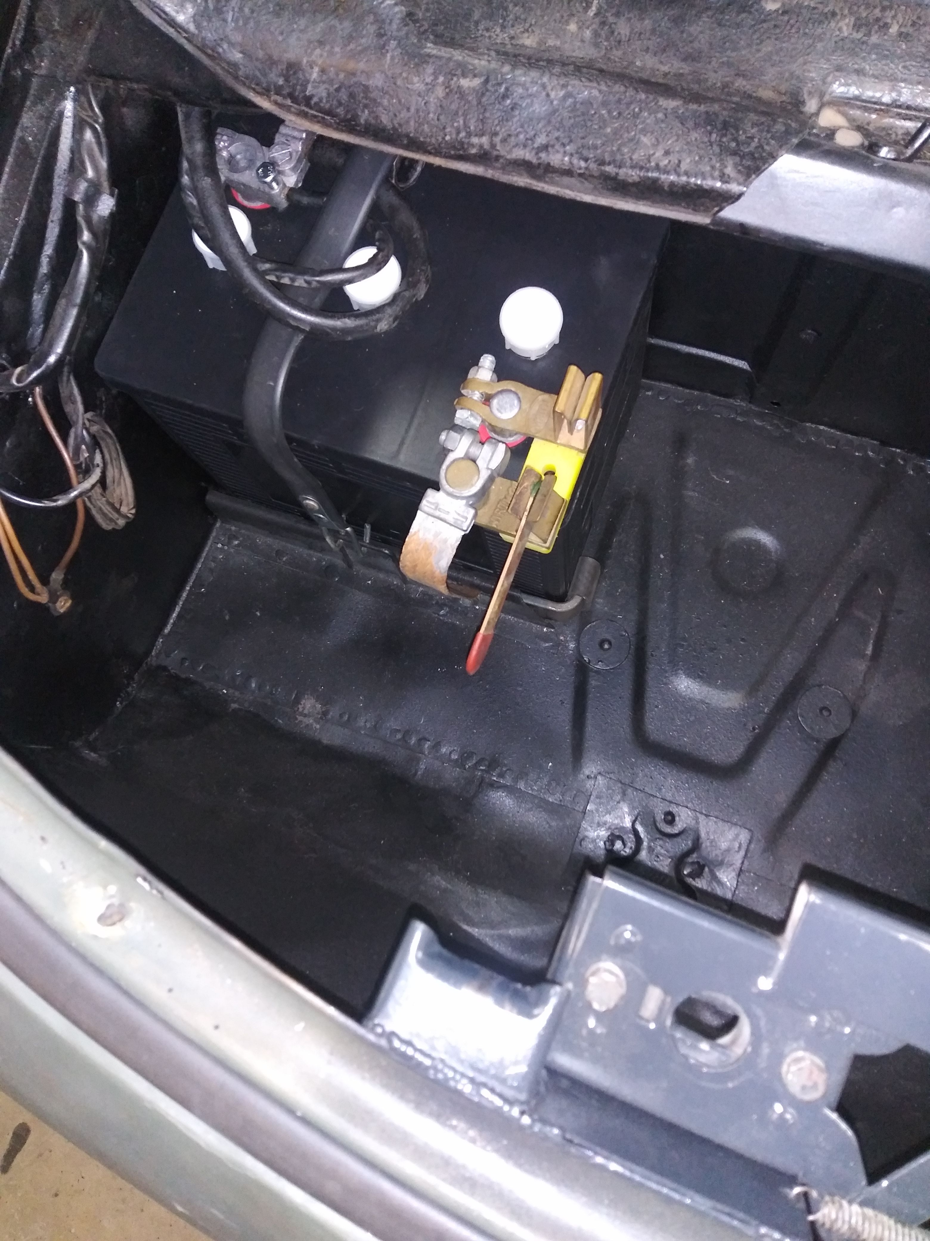 PO put a non 356 Porsche script on glove box door. Welded up 2 holes and stripped most of paint. Beach chair gives some back support.