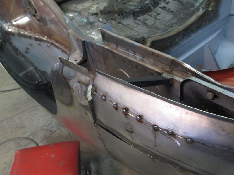 Same details as the right side. Backfill set screw holes, finish up wired lip joint and relax that leading flange snug against the skin.
