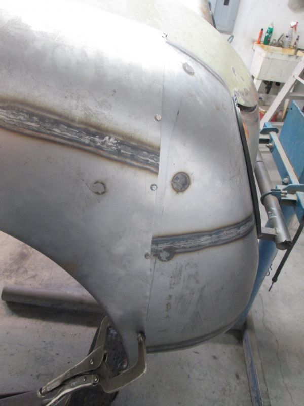 Fender remounted and on for good! Ready to begin planning my tack weld sequence so I can gather and contour shape the panels for best fit as it goes. That next.