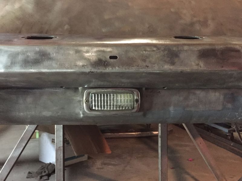 Oh S--t. I Googled in 356 Porsche bumpers, but not many pics of them installed. One came up on your old Samba thread where I guy posted a pic related to license plate hole locations. Looks like some car to car variation on the backup light clearance. Here is one taken years ago when I started removing Foam. Looks like the light situation you have: