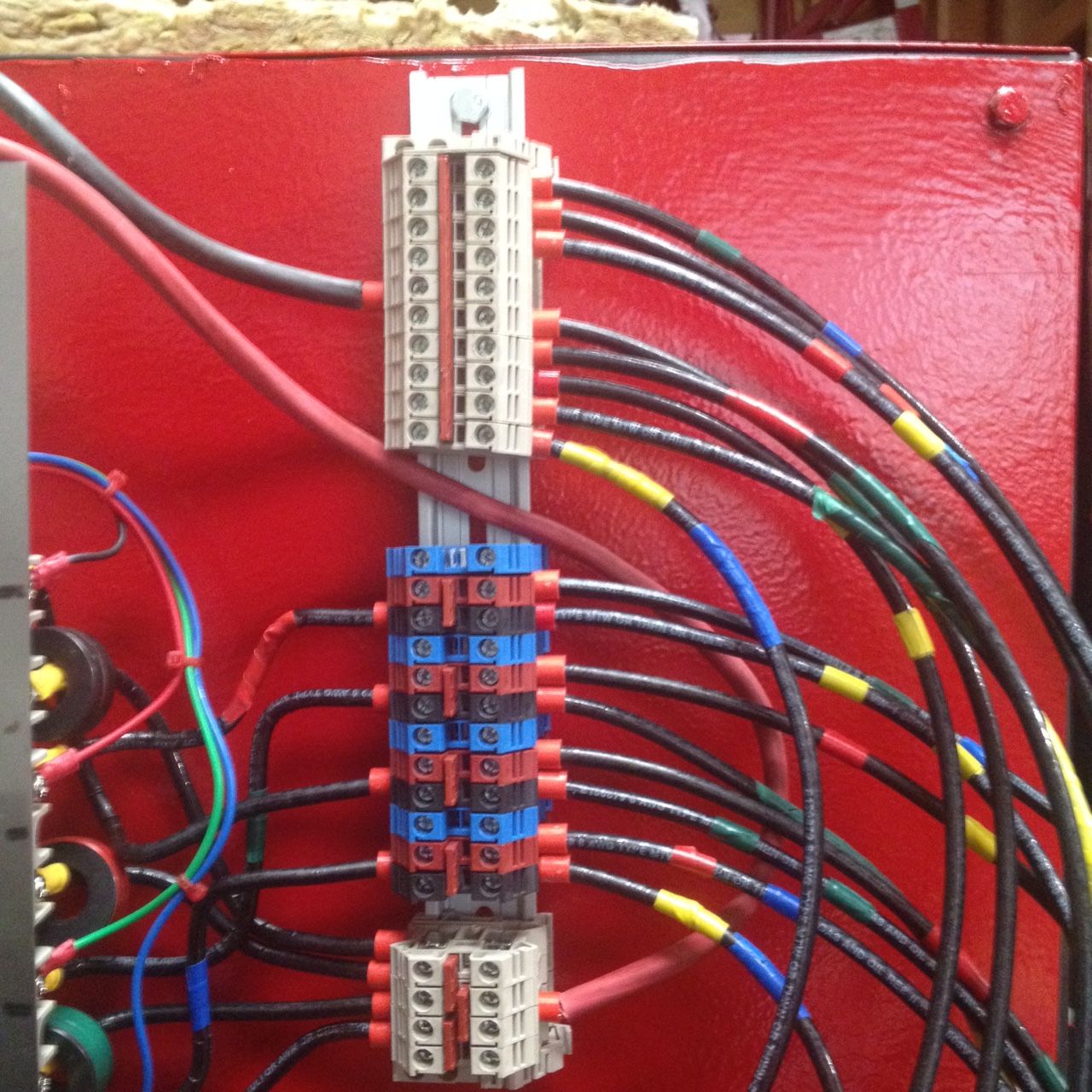 Another update, with a design change. It progresses and is close to relight and calibration. I decided to use a DIN Rail and terminal blocks to distribute the power to the heater elements. My first use of these outside of putting fire systems in CnC machines. There allow me to use 8AWG wire and power all the elements in any configuration I want in just a few minutes. The use a jumper between terminals like a blade fuse. So I can tie the heater elements in series or parallel and group them is any configuration I want. They are Color coded for location of the heaters inside. These are pretty cheap and very reliable and configurable.