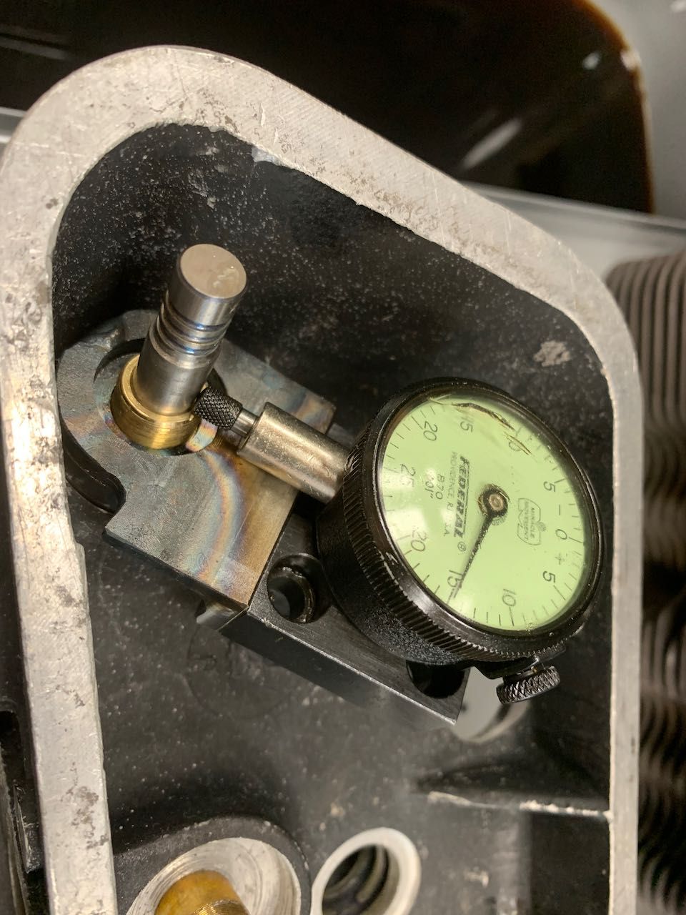 Here is a picture of one of the indicator holders I made for measuring valve to guide clearance.