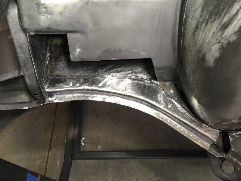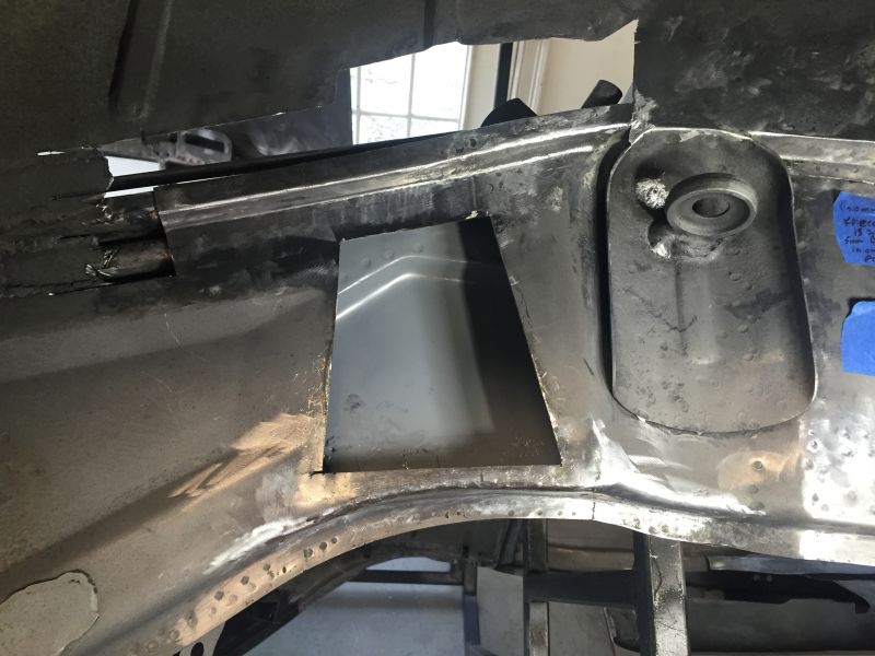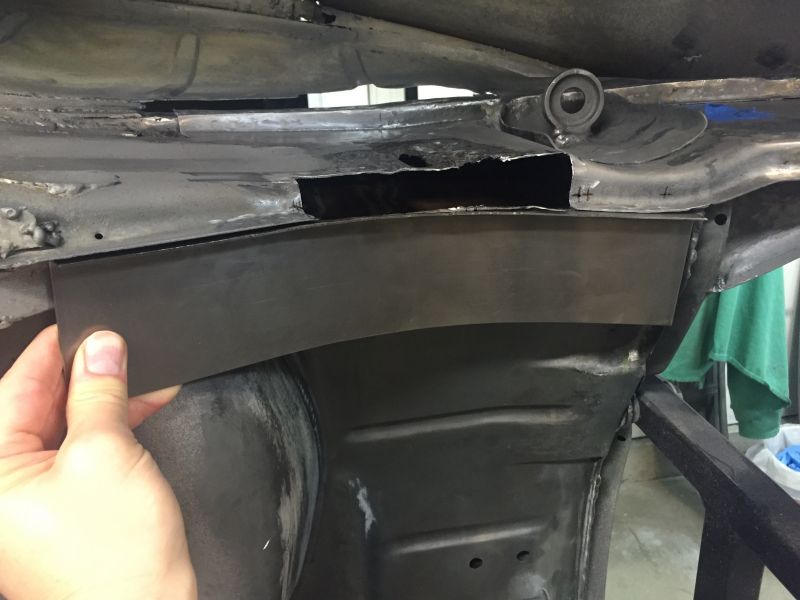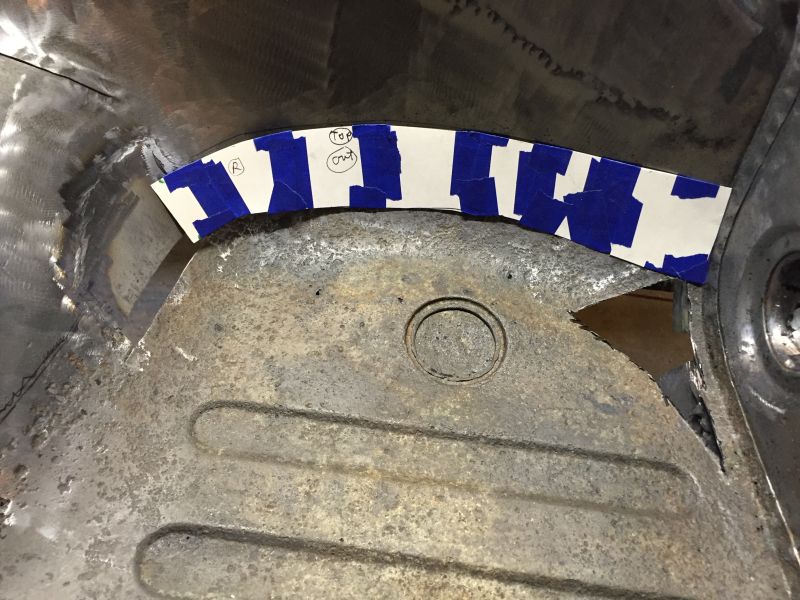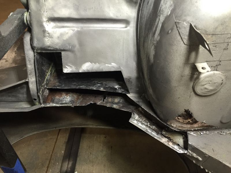 Doing this in a piecemeal fashion allowed me to use the remaining landmarks to make a pretty accurate replacement. The next part was the lower inner frame and flange. As you can see it's pretty much a goner.