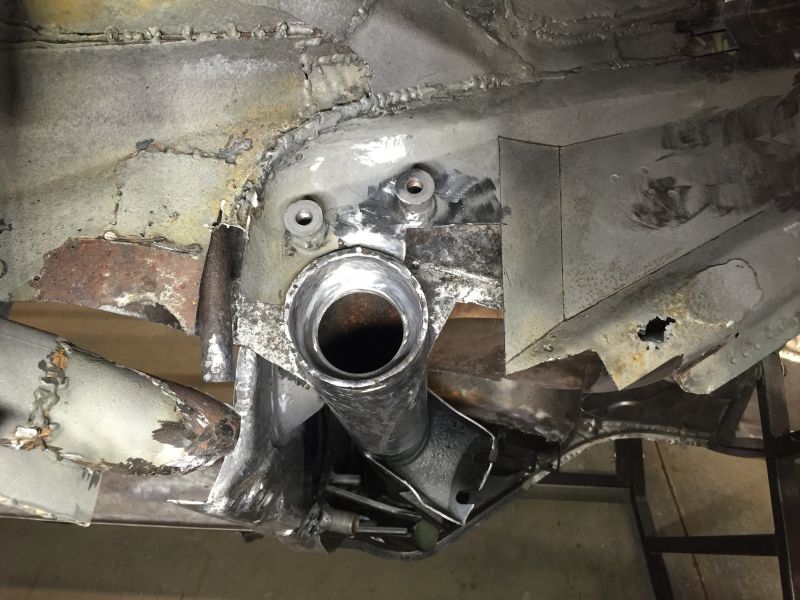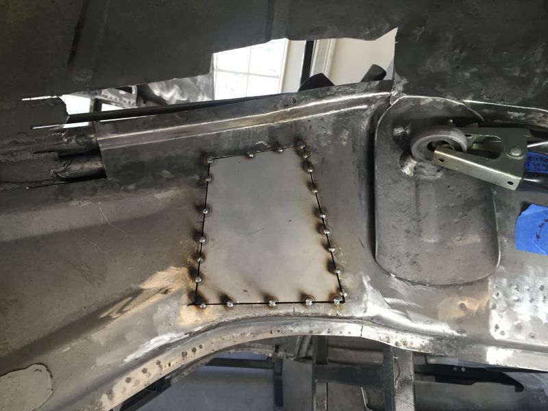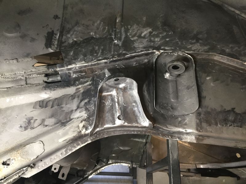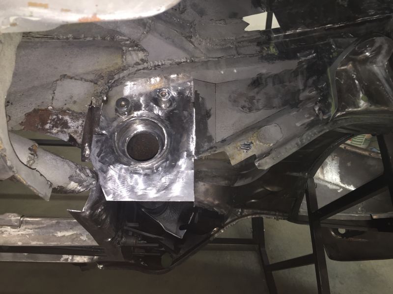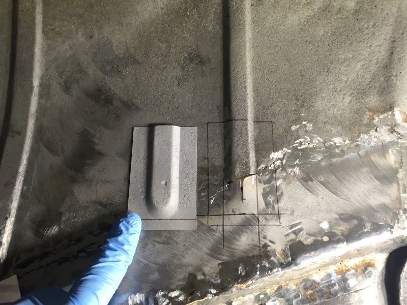 Once the outer frame was cut I could then flip the car over and cut out the rusted area of the transmission panel and fit a replacement piece.