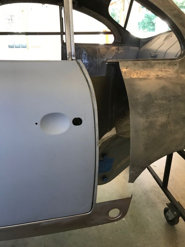 The lockpost was then welded to the sill and quarter window top and bottom. The metal strips welded to the fender also act as sight lines for a smooth contour and transition along the side of the car.