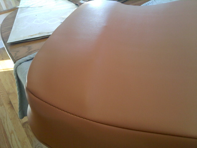 Looks good! I think when I had my hinges off the guy who recovered mine, way back when, slit the cover higher then yours then glued it down. Maybe sewing AND glueing it would take some of the stress of the stiches.