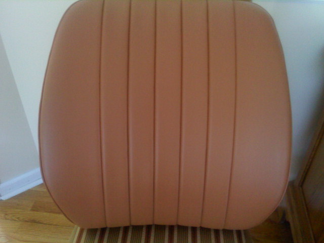 I shaved down the sharp corner of the foam back to reduce the bulge. It helped a lot but not perfect. The original had no padding on the back so I'll just leave it. If the head rest brackets weren't there it would be even better but I'm not cutting them off.