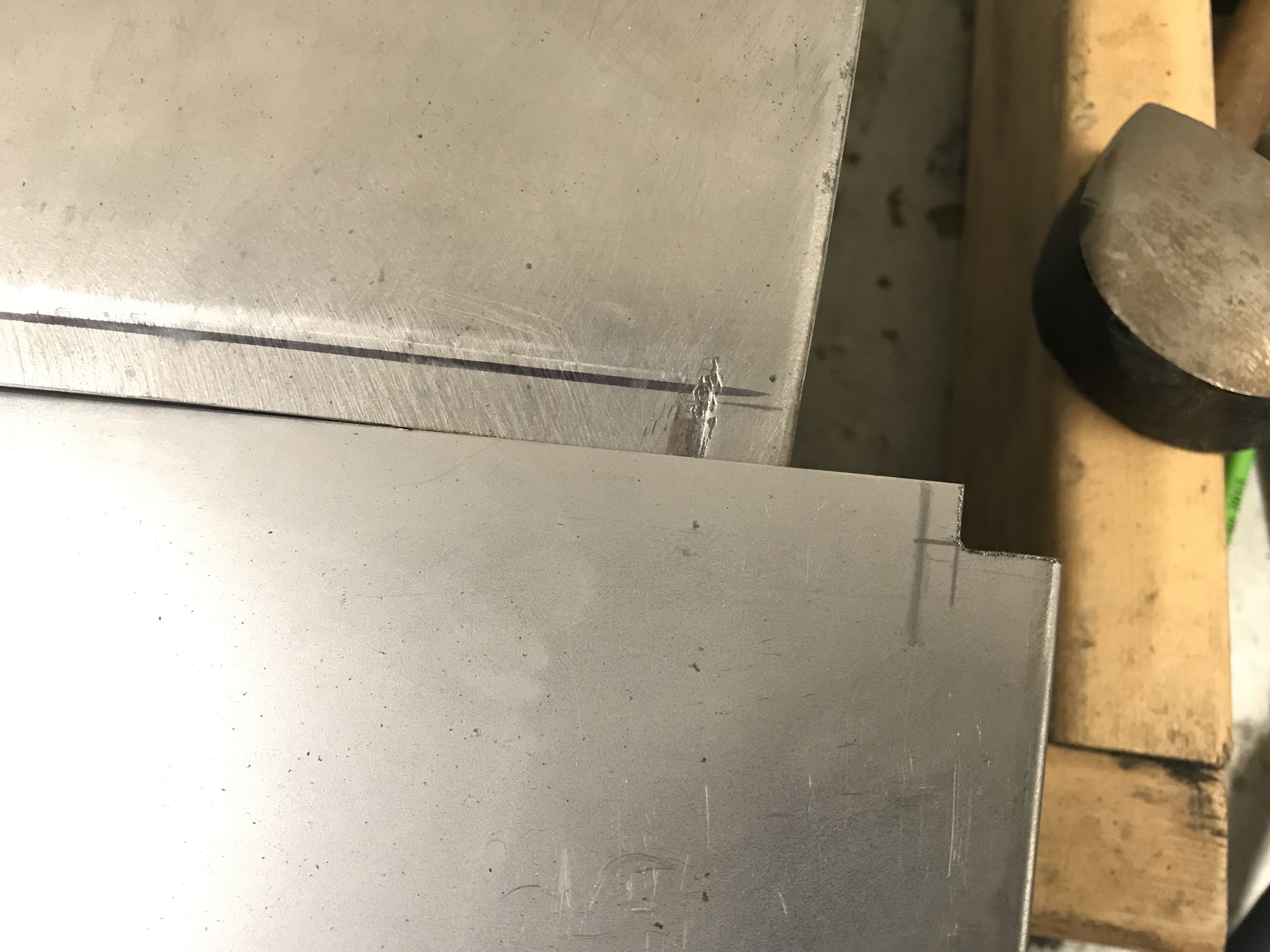 Tried a scape piece to test buck for shaping the edge. The front corner is odd. It starts with just an 90 degree bend following along the vertical leading edge of the door the transitions to a full fold over along the base of the door.