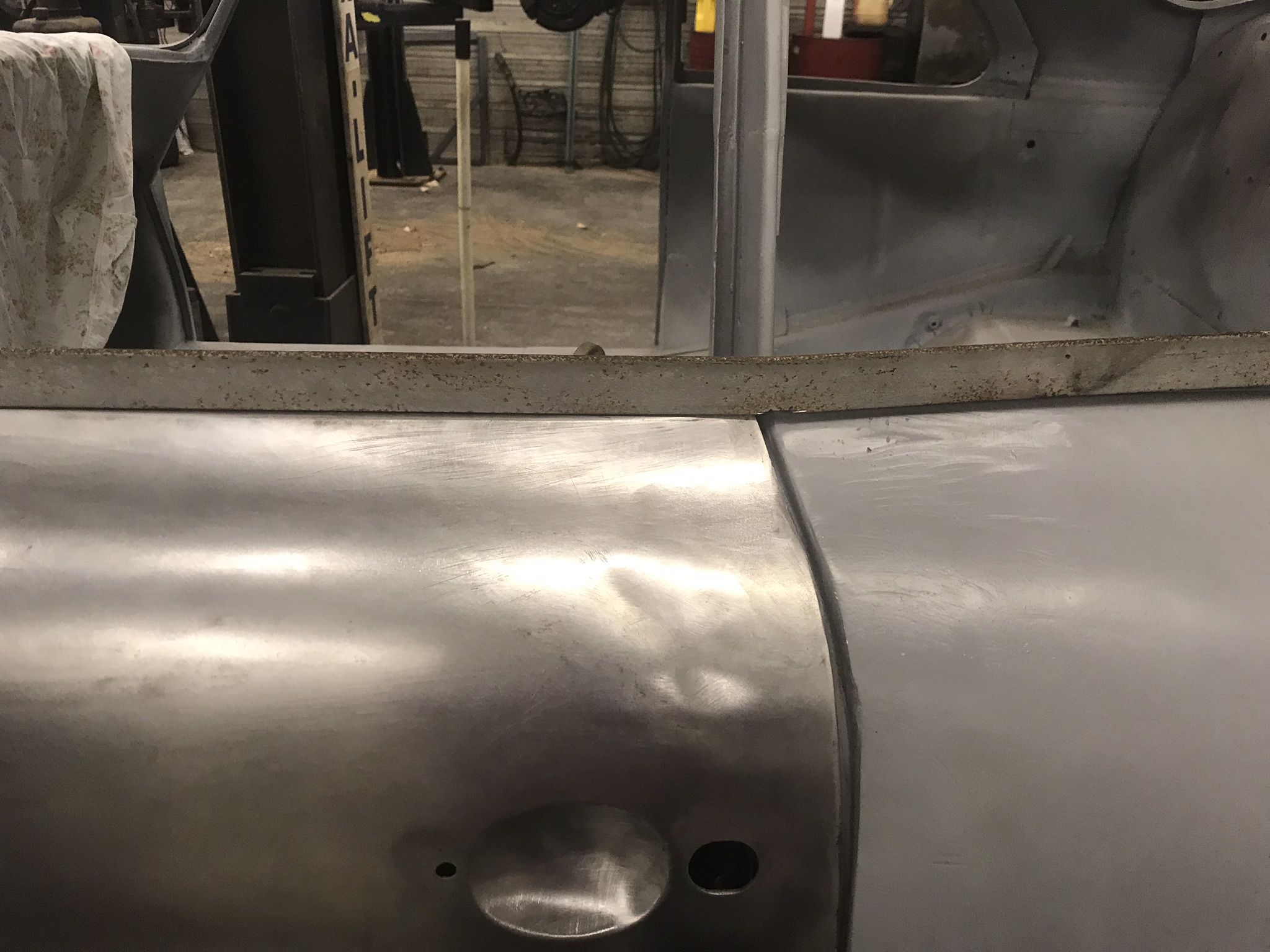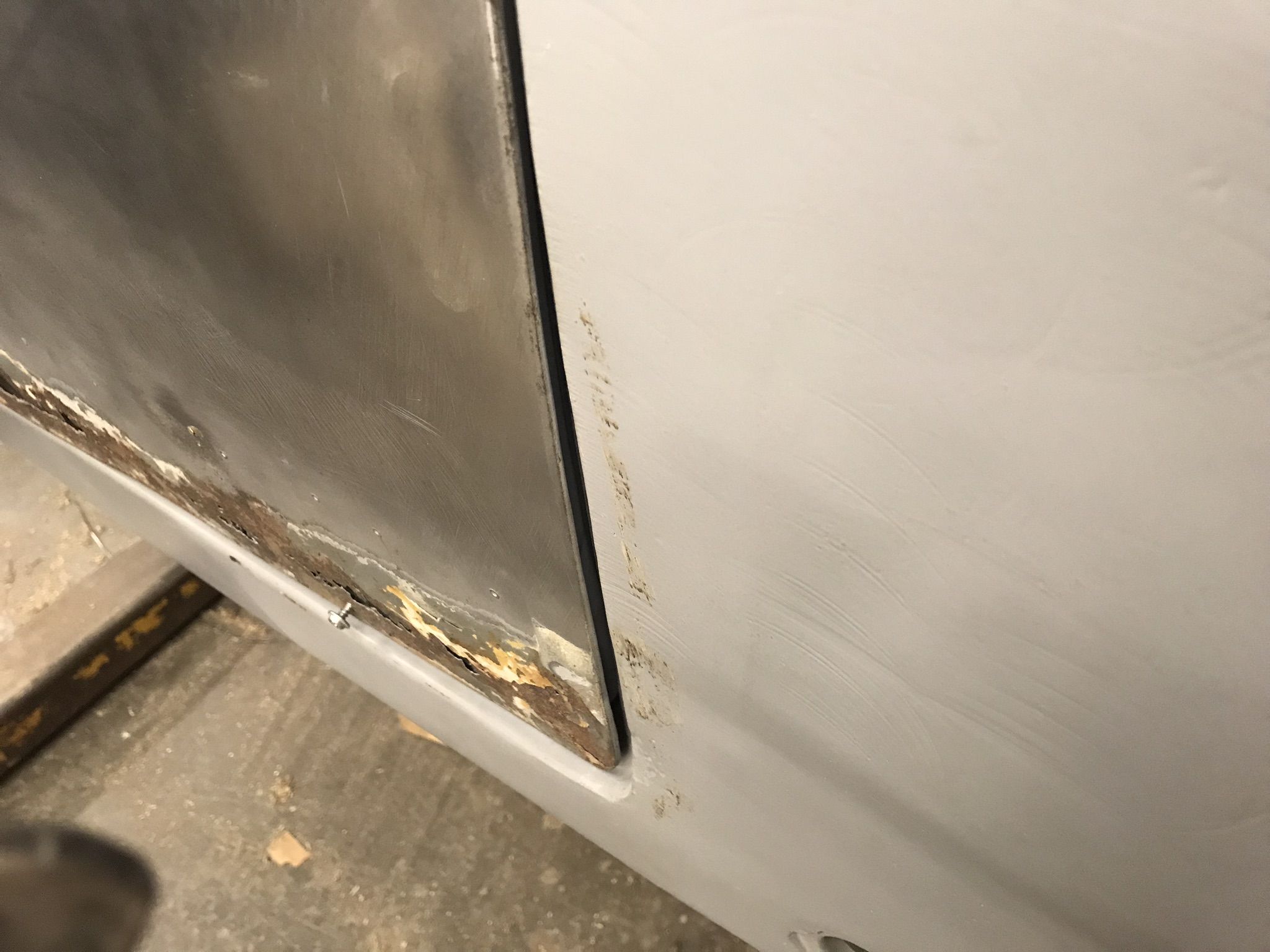 The passenger door is lined up but a significant problem with the new b-pillar panel. The lower third of the inner door is bumping up against the rubber seal form. And the width between the door and the rocker threshold is not straight o by the time the inner door reaches the b-pillar the is not gap.