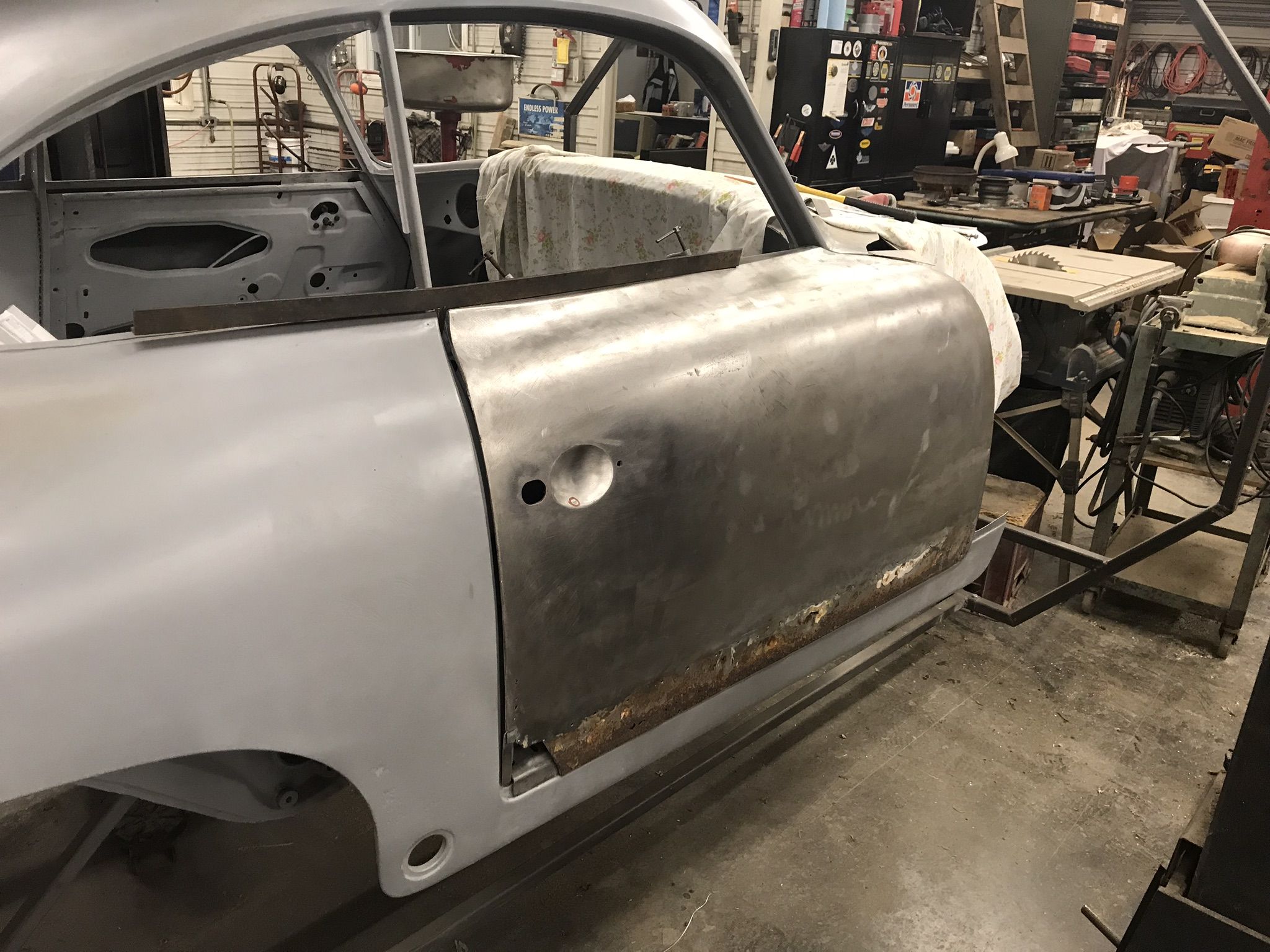 inner closing panels all done but not welded. This was a struggle to fit -- a lot of trimming and removing of material and then re-adding material. Also trimming to match door profile took some time. Still hesitating about welding in before I figure out the side fender piece