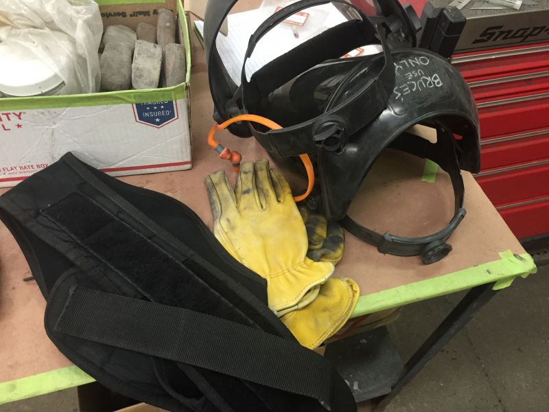 As for sound deadening, I just walked out into the shop and photo'd my most used personal equipment. Ear protection, face and eye protection, hand protection and back protection. Out in the shop I or someone(s) else are always hammering, grinding...or both. Even using the shrinking disc is too loud for unprotected ears.