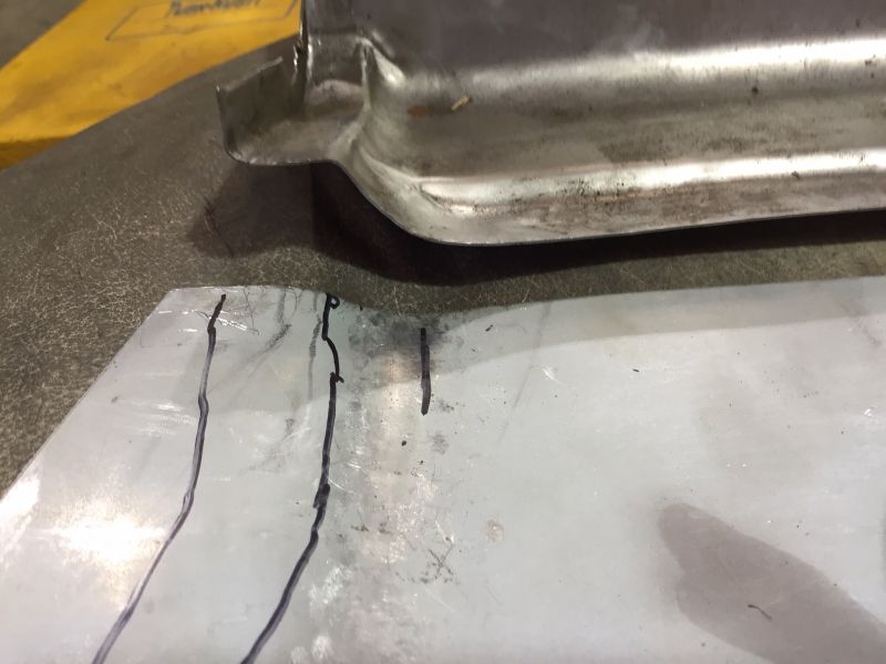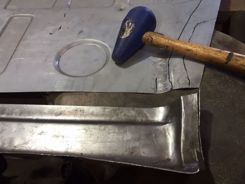 It has been so long I forgot that I ordered the pans from Stoddard bc theirs was closest to my original pans being that my car is an early 57. Well I ordered the front toe kick a month ago from Restoration Design, and big surprise, they didn't mate up. What to do, order pans from RD or a new toe kick from Stoddard. After some study, I did what all good fabricators do, I said F it and decided to make it all work bc there was no guarantee any of it would fit anyhow. So out came the hammer and bag. After too many hours of beating, it is getting close. Fortunately I had my originals and knew what it should be like. The shape was more like the RD curve.
