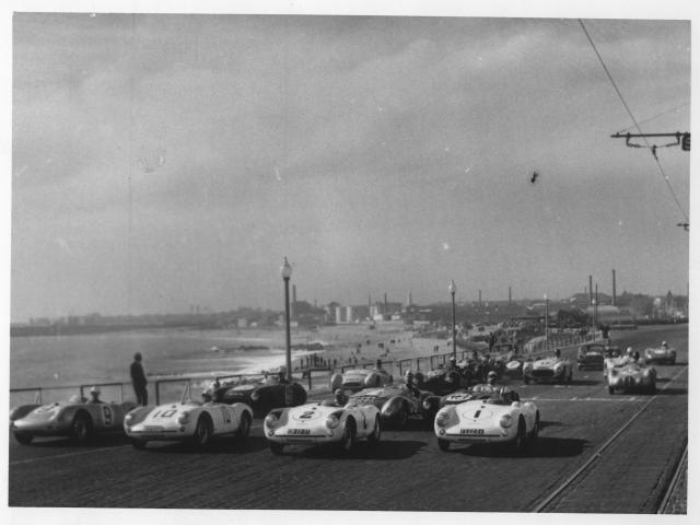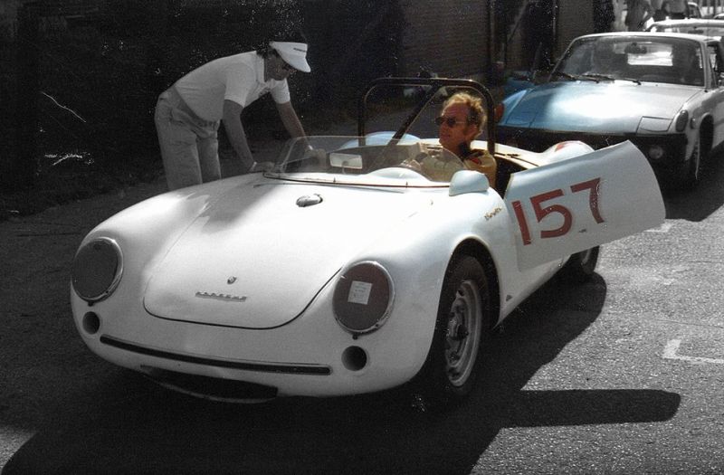 • Interesting old photo Andrew; looks vintage. Great license plate BTW! Speedster windshield frame and custom wind-wing behind the driver. Maybe John or Chad have another shot of this car??? Justin
