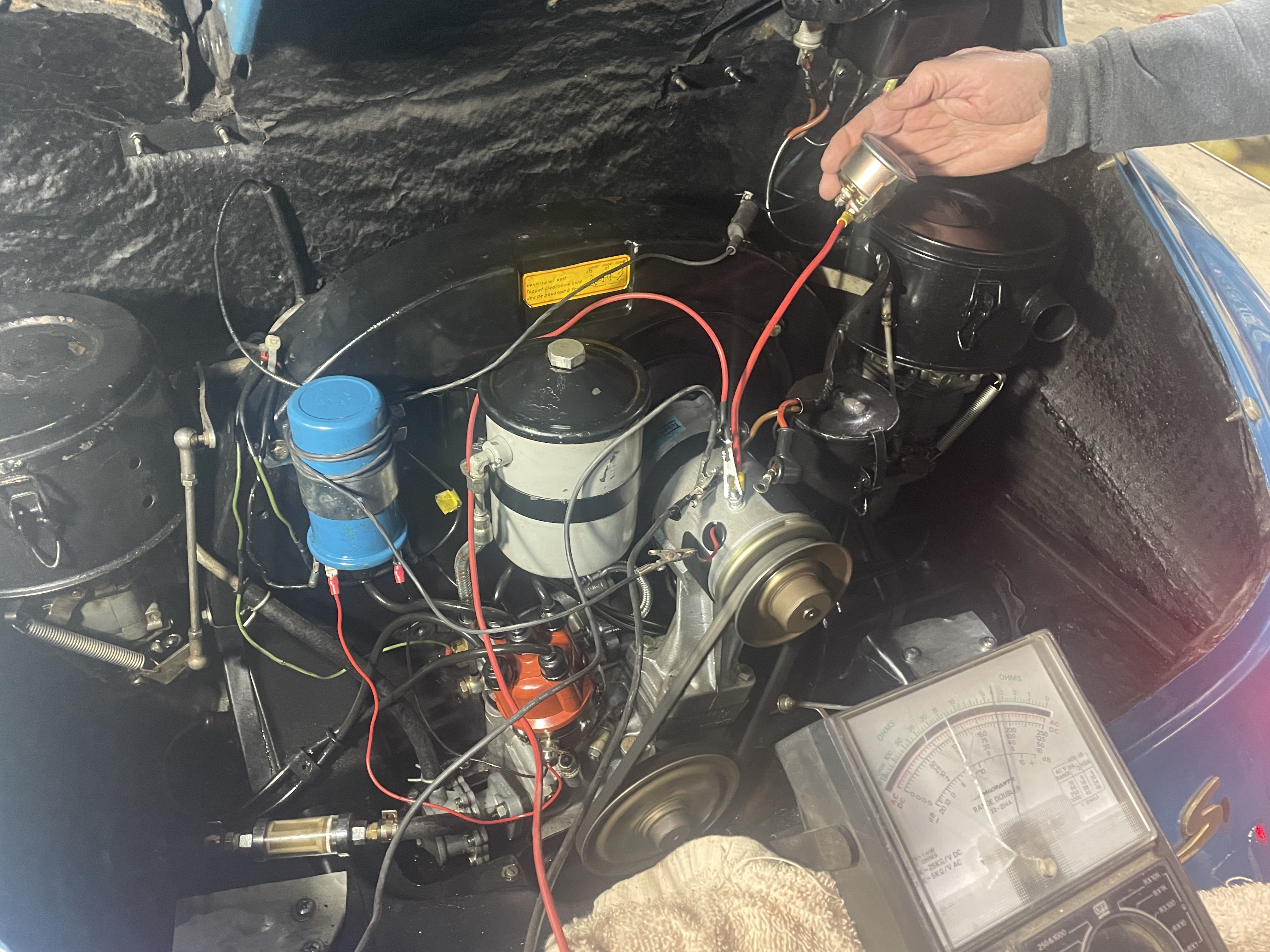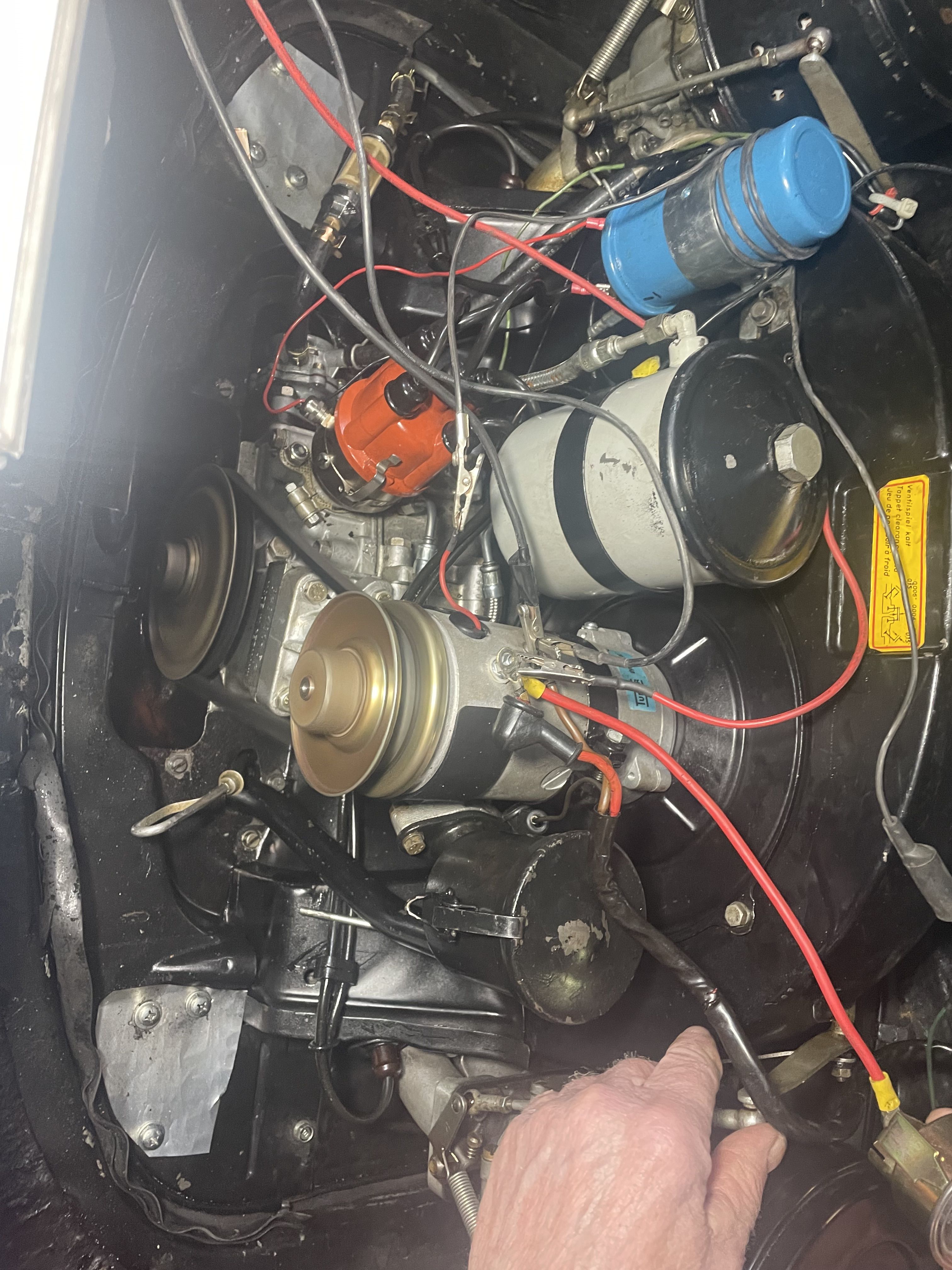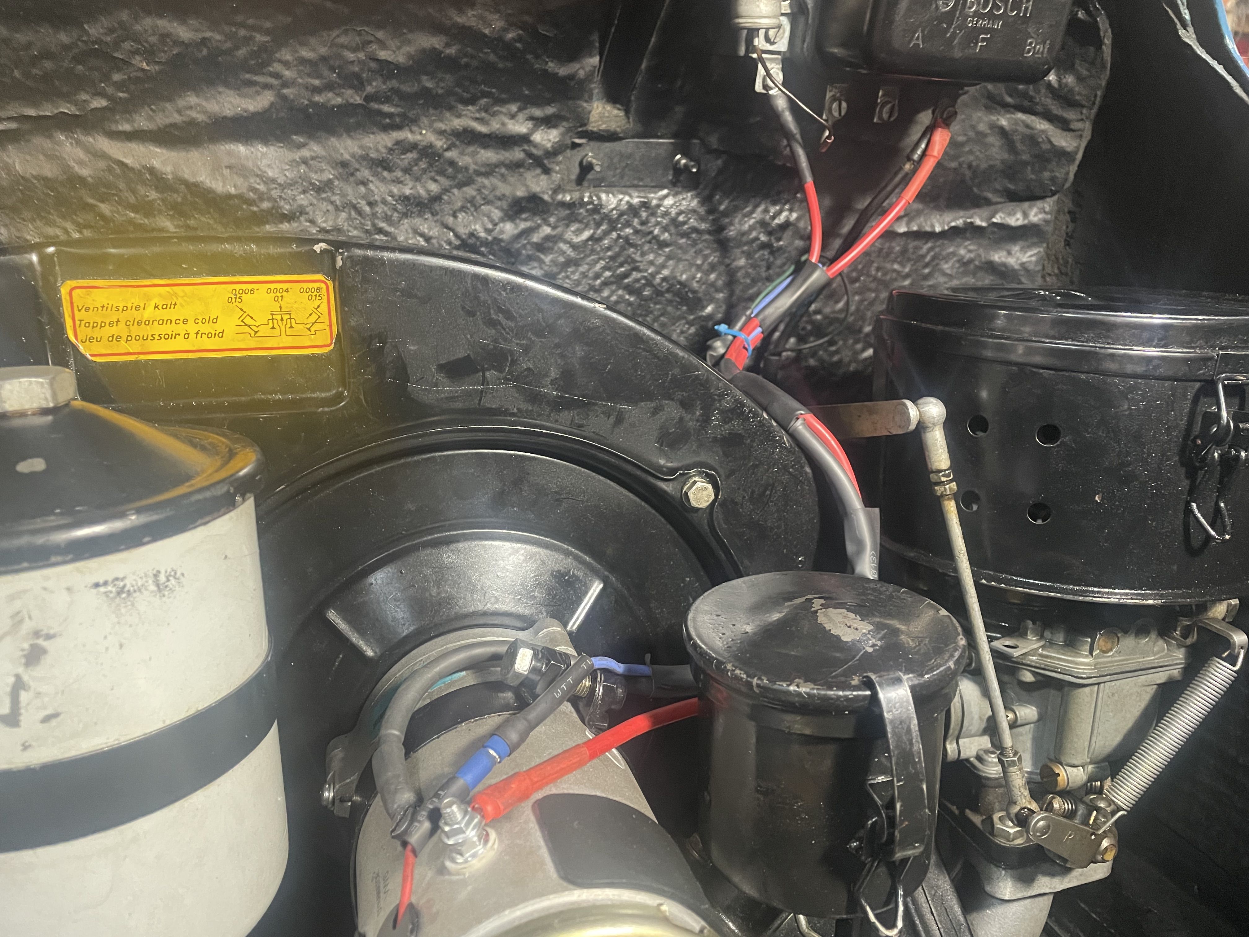 Tom Olson, long time PCA member and annual cross country 356 driver bought a new Tudor 6v alternator for his 356B. We installed it this weekend. Called Cliff Murray in Philly who found them and talked to him about the wiring confirmation. It was an easy conversion. 7.5-7.8v at idle and 29 AMPs. Everything fit as well as expected. No issues at all.