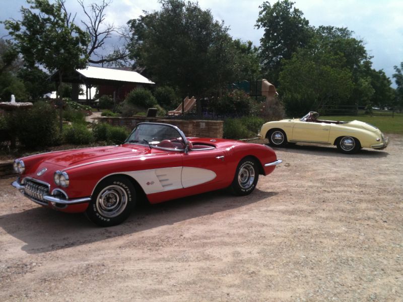 I'm with you; the 356 is my first love but there is that primal streak in me that only the sound and power of a V8 with a four speed can satisfy. What better car to house it in than a vintage corvette. Beautiful Vette you have BTW! 1960? Nice speedster too!!!