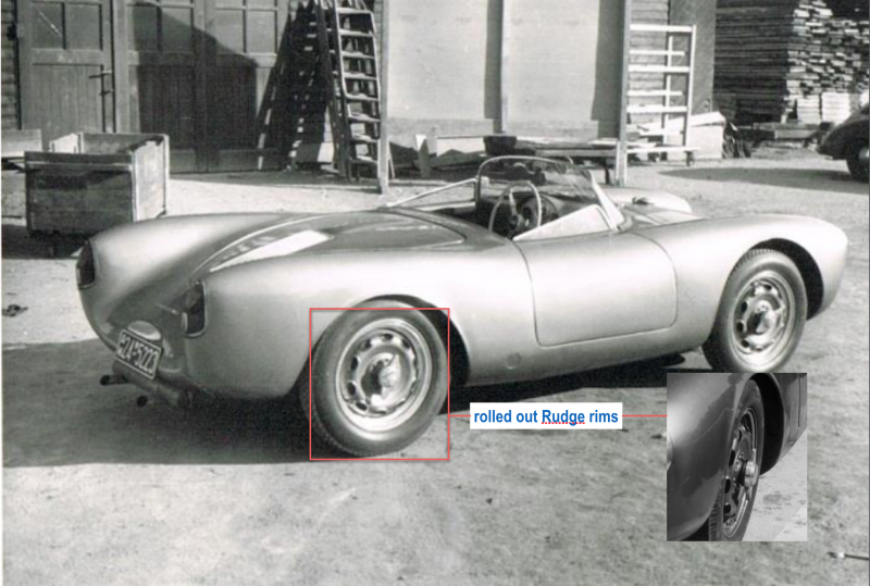 It is believed that there were only 2 sets of 16" Rudge wheels. One (rolled in) was on 550-05 at the 1953 Paris car show and the other set (rolled out) was on 550-06 at the January 1954 Brussels car show (when 550-05 was in Brazil). After this they were fitted to 550-05.