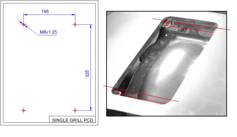 I have the P.C.D of the threaded hole (Weld Nut) tabs please comment if incorrect.